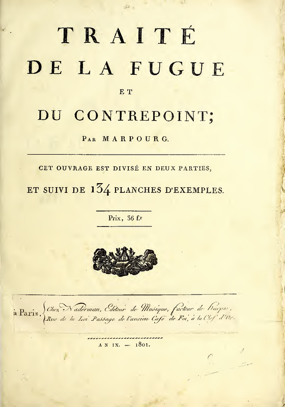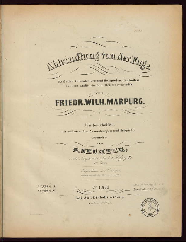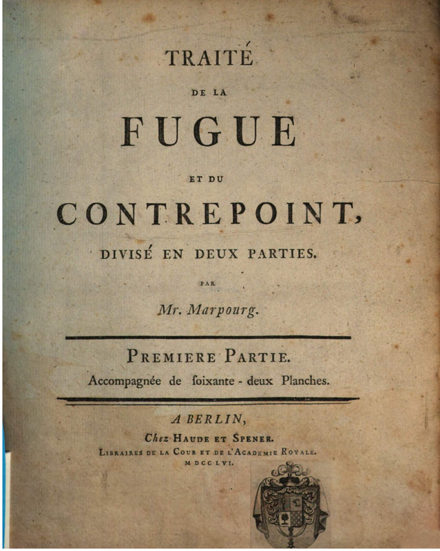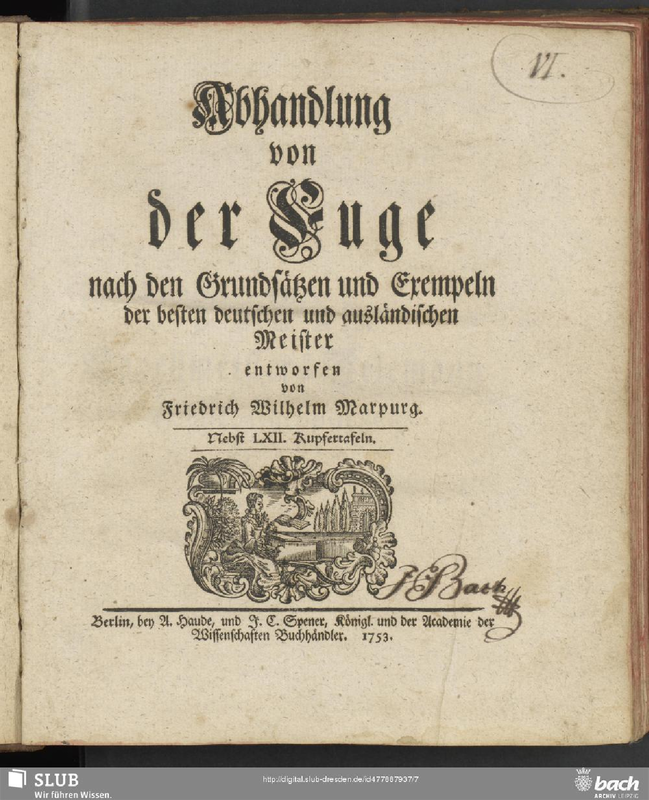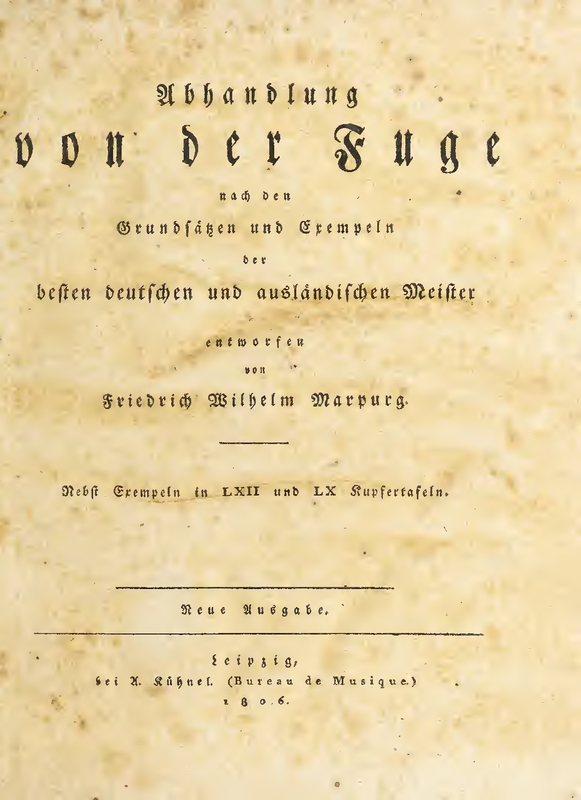 | Alternative. Title | Abhandlung von der Fuge, nach den Grundsätzen und Exempeln der besten deutschen und ausländischen Meister entworfen von Friedrich Wilhelm Marpurg |