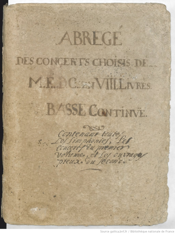| Alternative. Title | Abregé des Concerts choisis en VIII Livres, contenant toutes les Simphonies, les concerts du premier Volume, et les ouvrages pieux du second. |