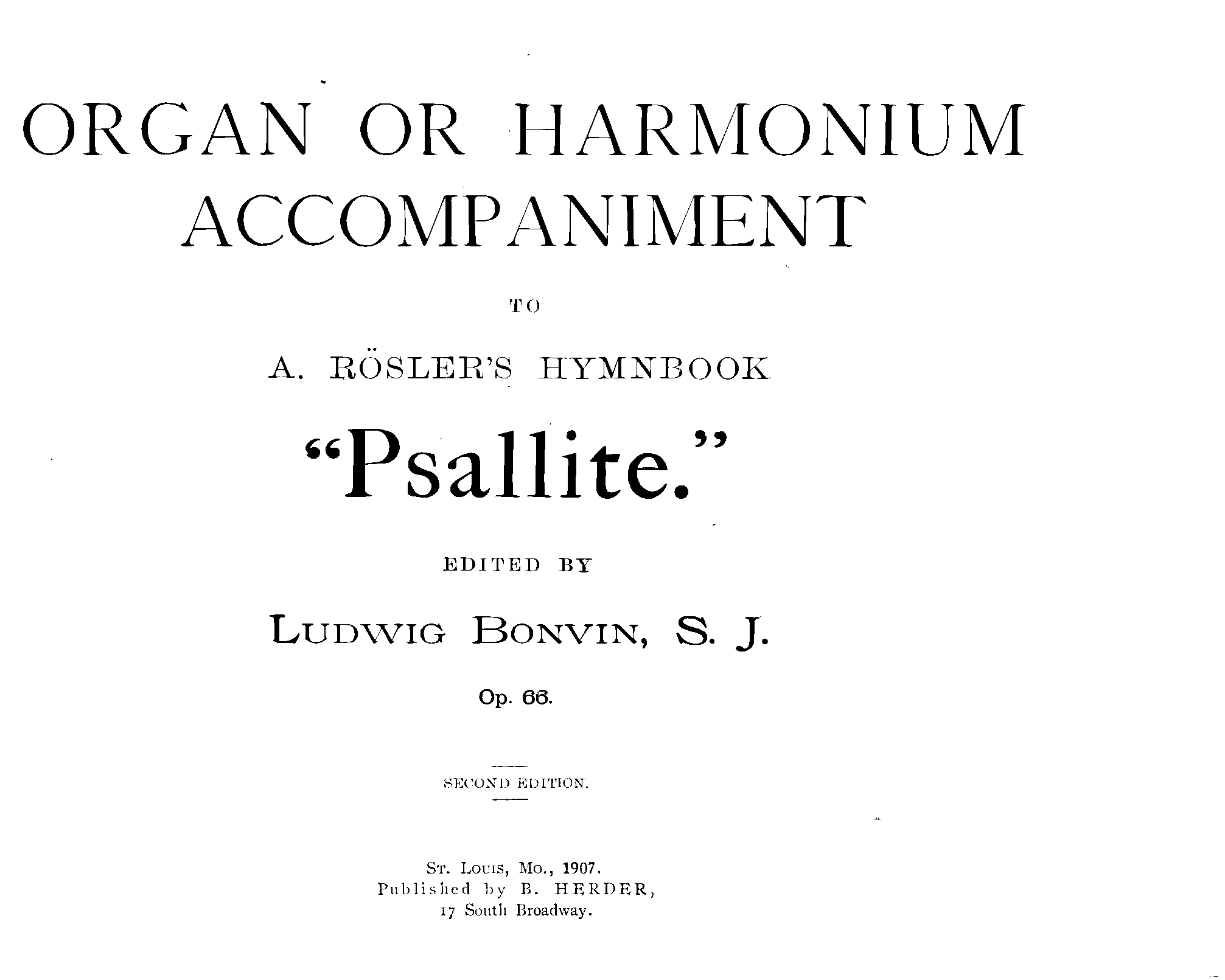 Organ or Harmonium Accompaniment to A. Rösler's Hymnbook "Psallite"