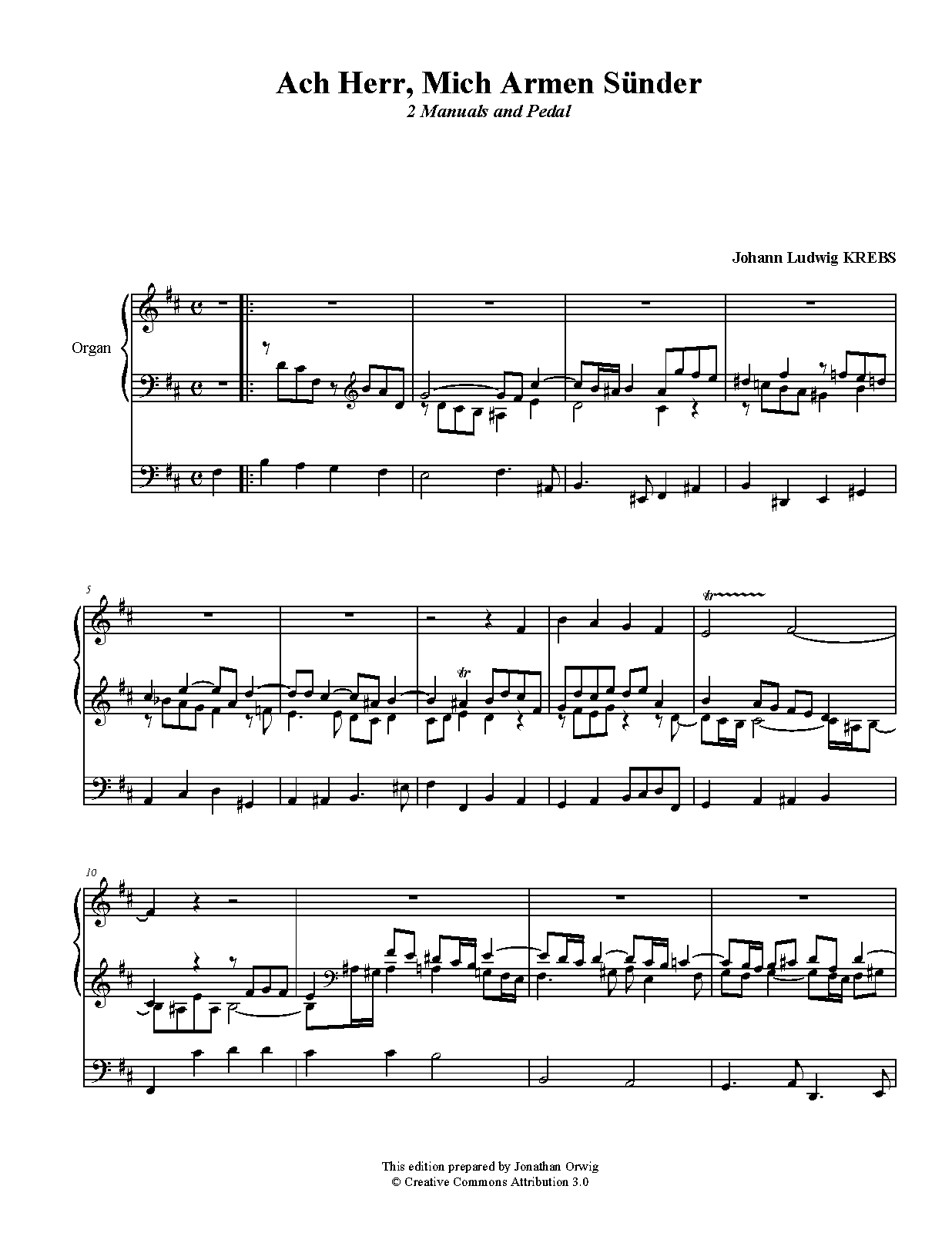 Krebs: Complete Organ Works, Vol.3 (pp. 14-17) Wiesbaden: Breitkopf und Härtel, No. EB 8415, 1986. Plate Wb. 1851. URTEXT EDITION
