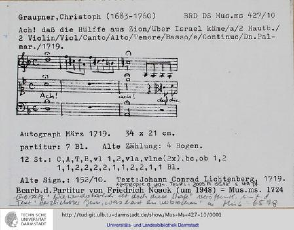 | Work Title | Ach dass die Hülfe aus Zion über Israel käme |