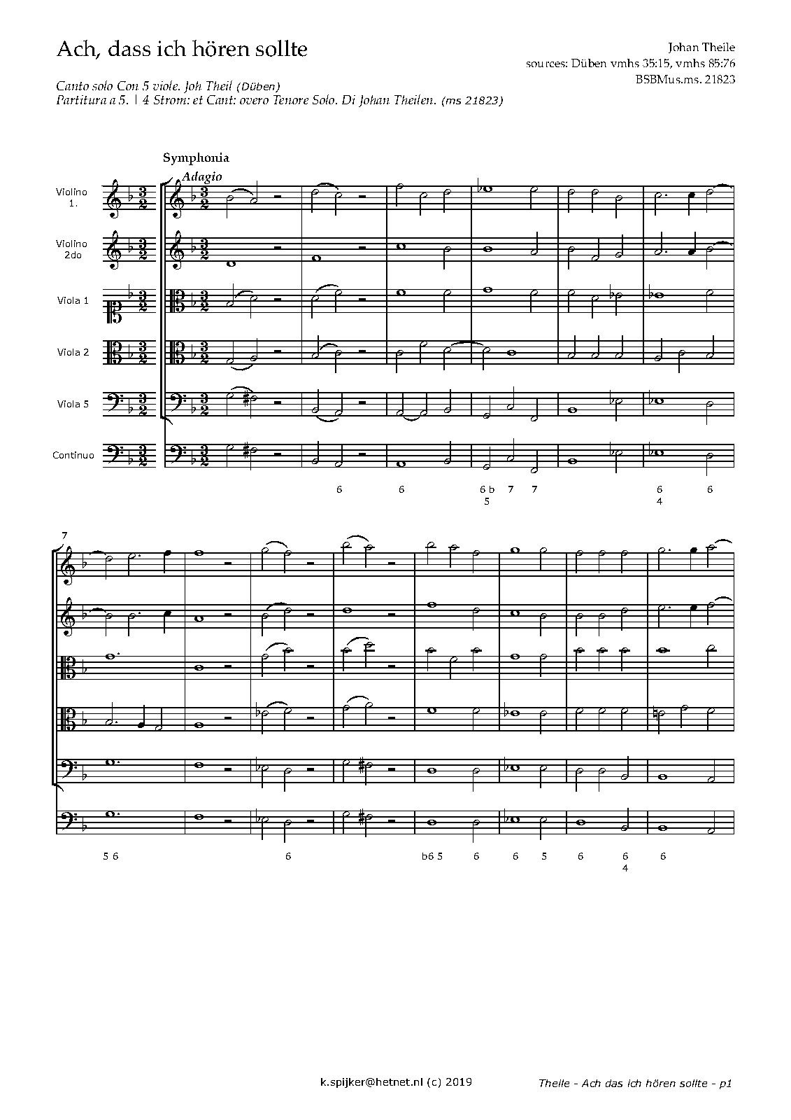 | Instrumentation | soprano (or tenor), 2 violins, 2 violas/(viols?), continuo |