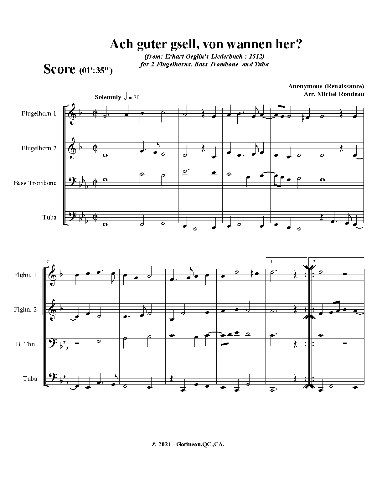 For 2 Flugelhorns, Bass Trombone and Tuba (Rondeau)