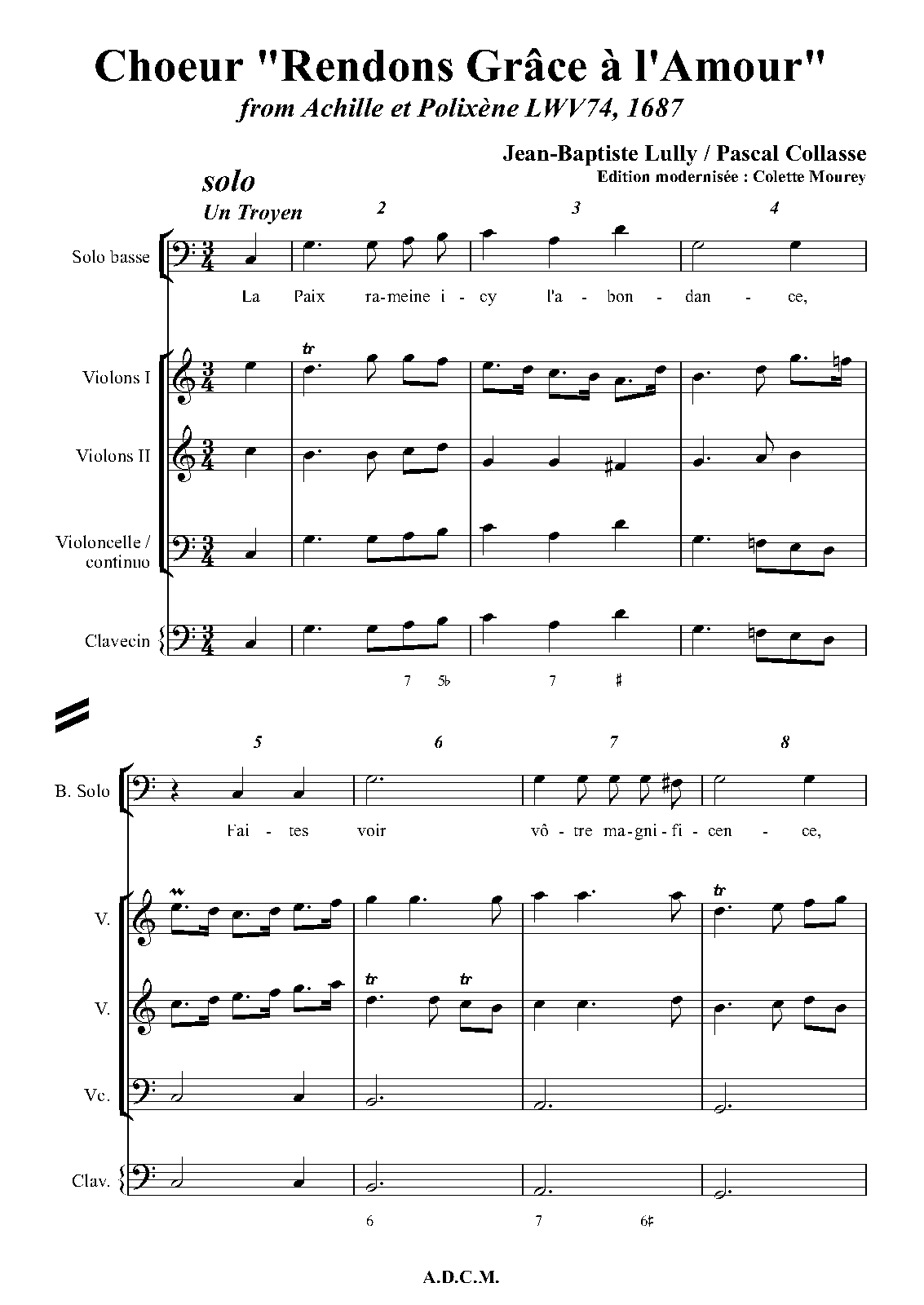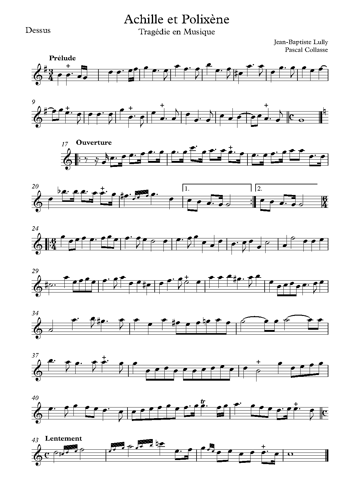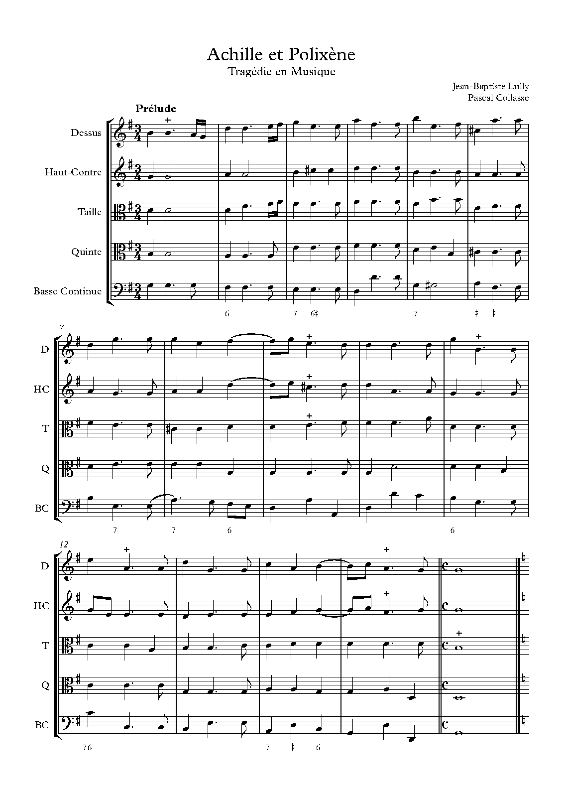 | Extra Information | The opera was left unfinished at Lully's death (March 22, 1687) and was completed by Pascal Collasse (1649-1709). Lully managed to finish the overture and Act I. Collasse provided the Prologue and Acts II through V. |