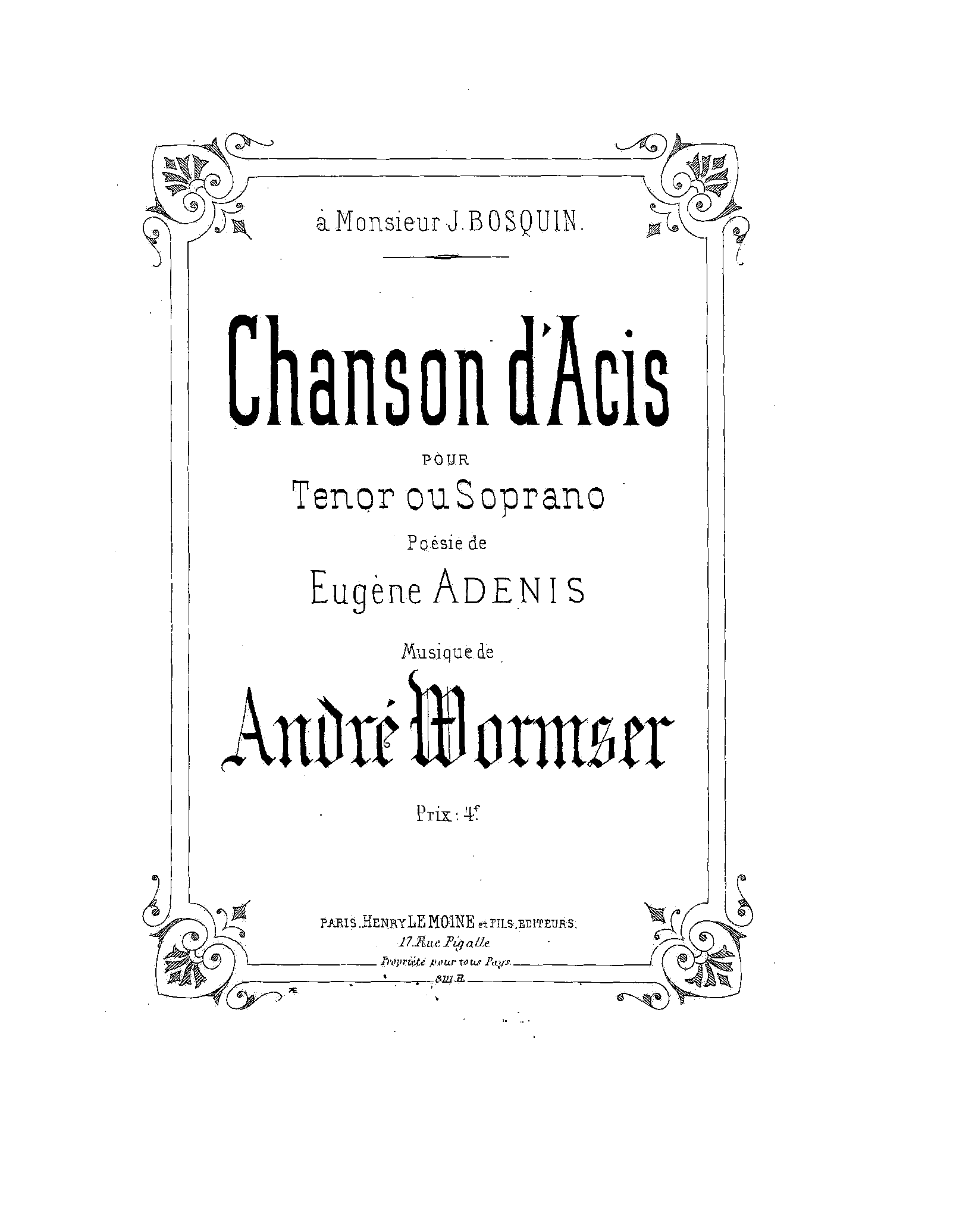 | Genre Categories | Pastorales; For voice, mixed chorus, orchestra; For voices and chorus with orchestra; |