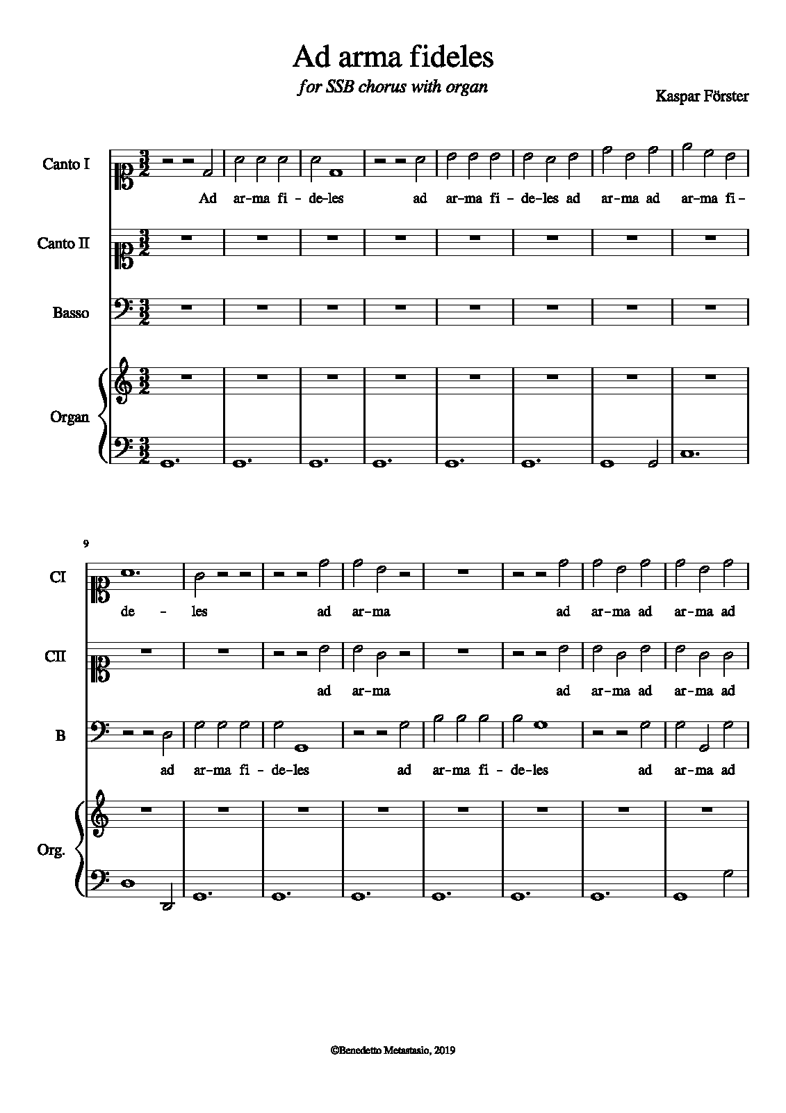 | Instrumentation | 3 voices (SSB), organ, continuo |
