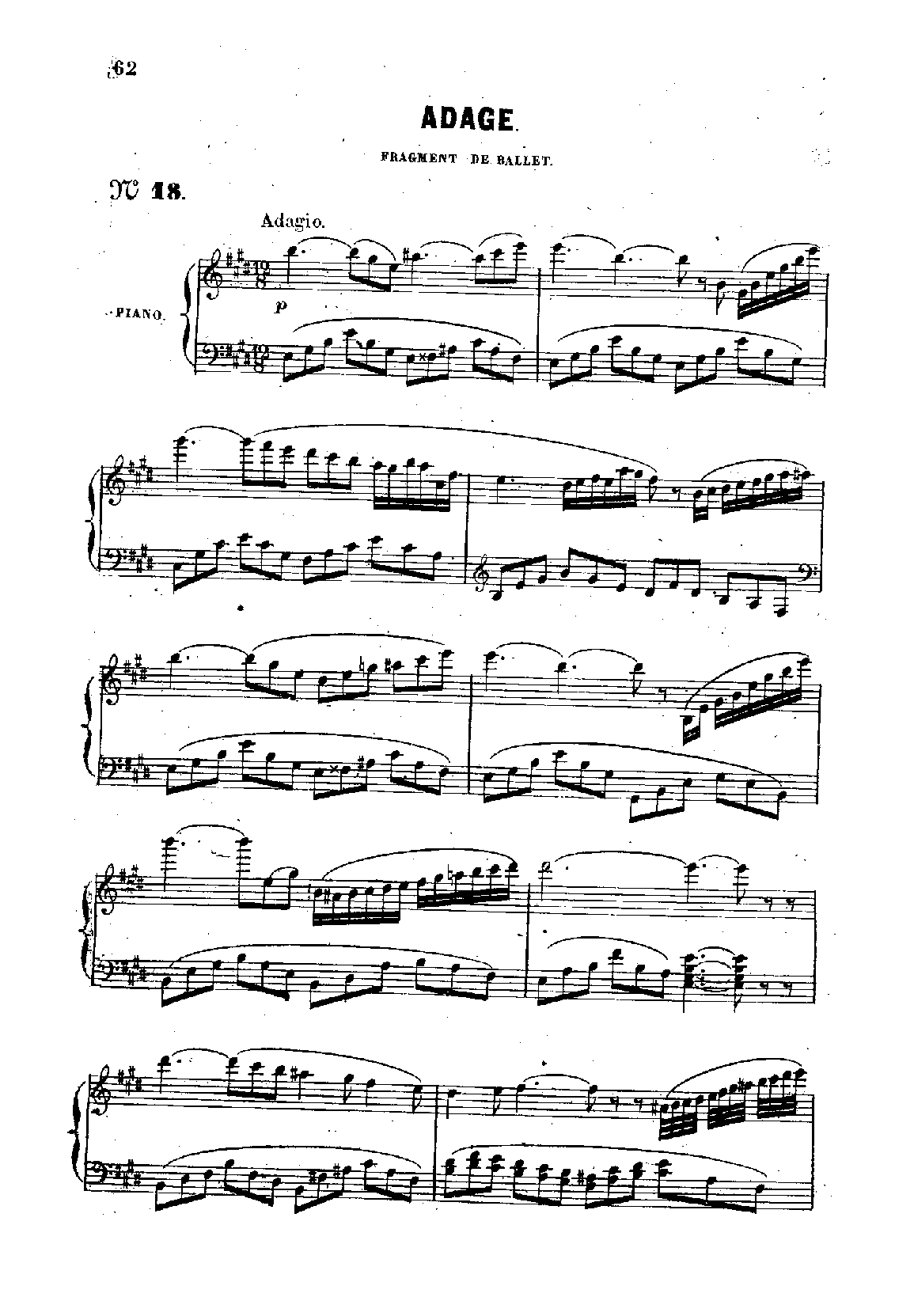 | Extra Information | Despite its inclusion in a collection of song transcriptions, there is no evidence of a song by Gounod entitled "Adage". The source remains unclear. The subtitle "Fragment de ballet" might provide a hint, but a cursory check of the music of various ballets from Gounod's operas has turned up no results. |