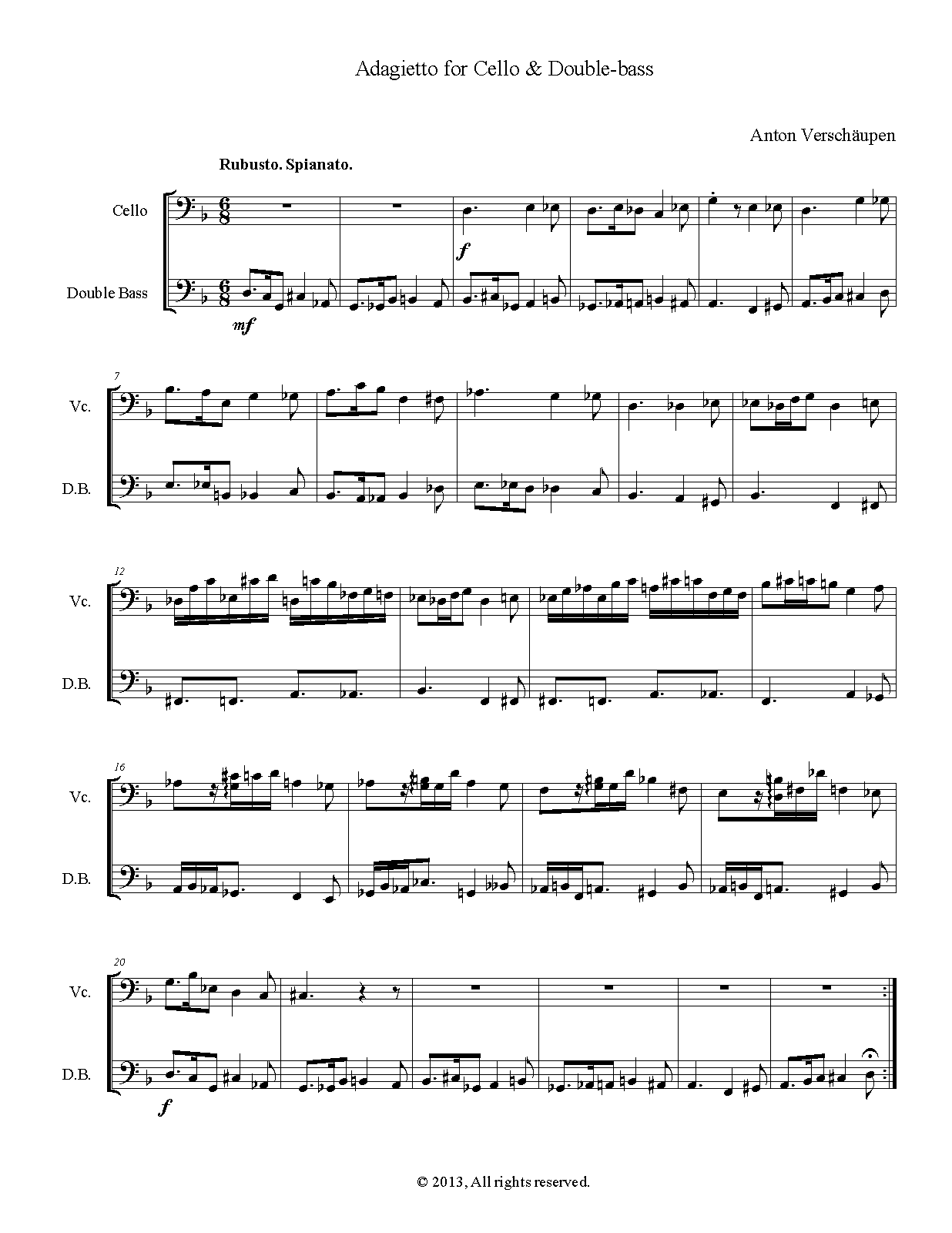 | Genre Categories | Adagiettos; For cello, double bass; Scores featuring the cello; |