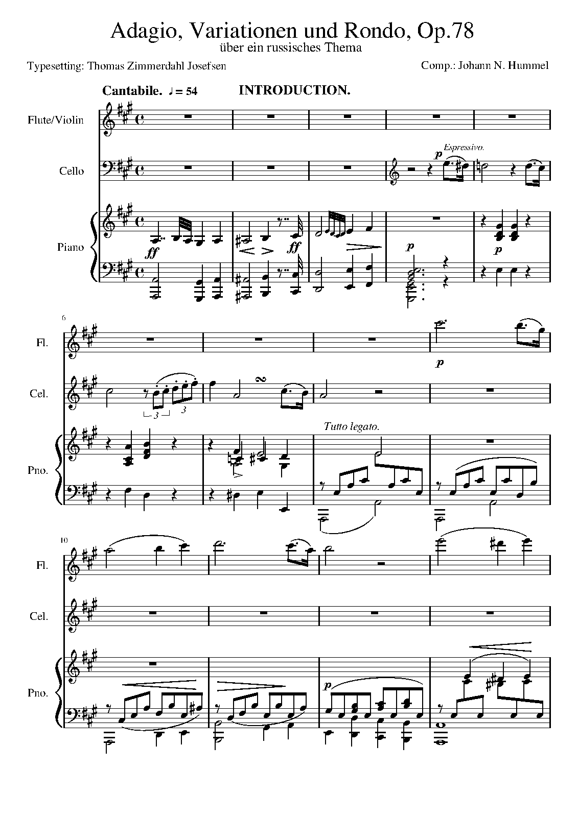 - The cover page makes no mention of violin in place of flute, but it does appear in brackets on the flute part. This looks like it was probably the first printing of this work, so it is assumed that the violin substitution was an alternative given by Hummel.