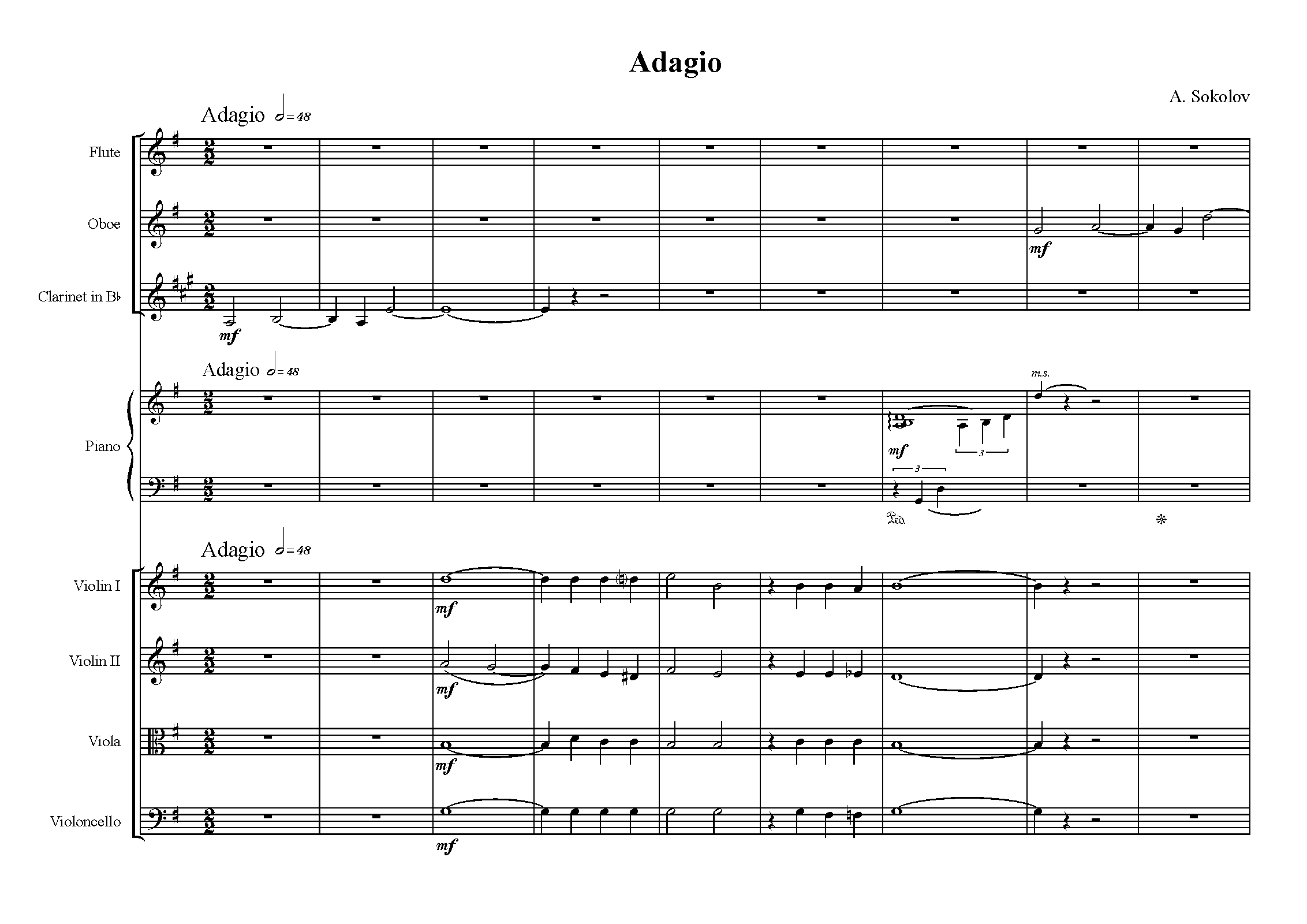 | Genre Categories | Adagios; For flute, oboe, clarinet, 2 violins, viola, cello, piano; Scores featuring the flute; |
