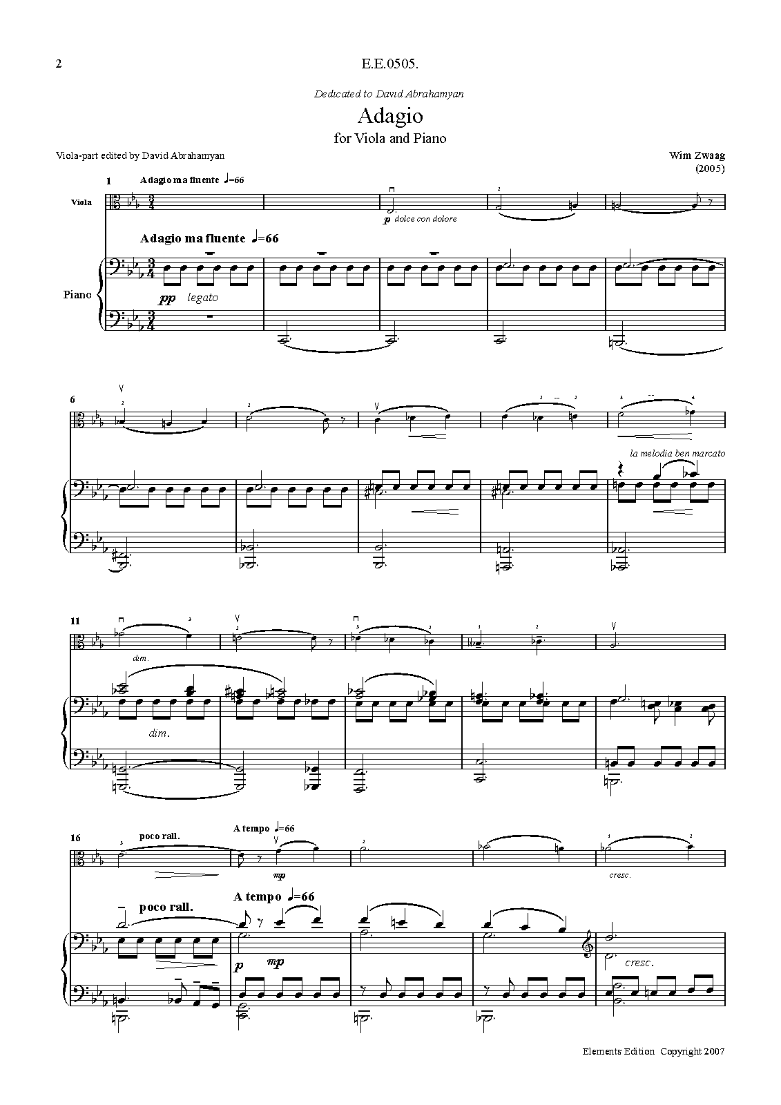 | Genre Categories | Adagios; For viola, piano; Scores featuring the viola; |