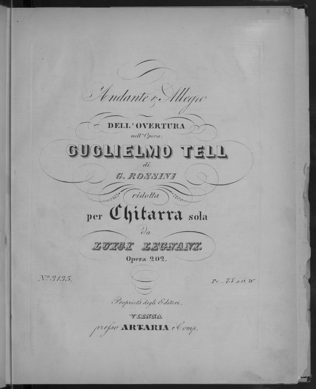 | Alternative. Title | Andante e Allegro dell’ Overtura nell’ Opera: Guglielmo Tell di G. Rossini, rid. p. Chitarra. |