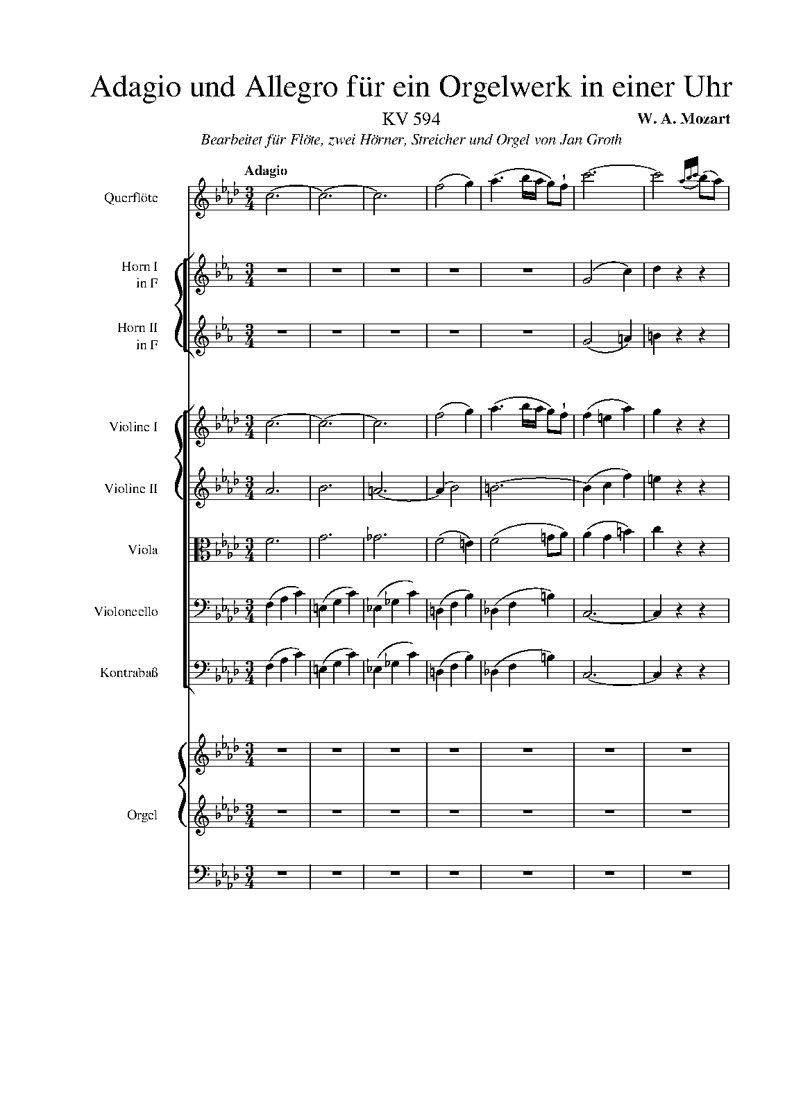 Name Aliases KV 594; Adagio y allegro para órgano mecánico (Mozart); Adagio y allegro para organo mecanico (Mozart); Musica funebre para el mariscal Laudon (Mozart); Adagio y allegro para órgano mecanico (Mozart); Adagio y allegro para organo mecánico (Mozart); Musica fúnebre para el mariscal Laudon (Mozart); Adagio und Allegro für ein Orgelwerk in einer Uhr; Ein Stück für ein Orgelwerk in einer Uhr