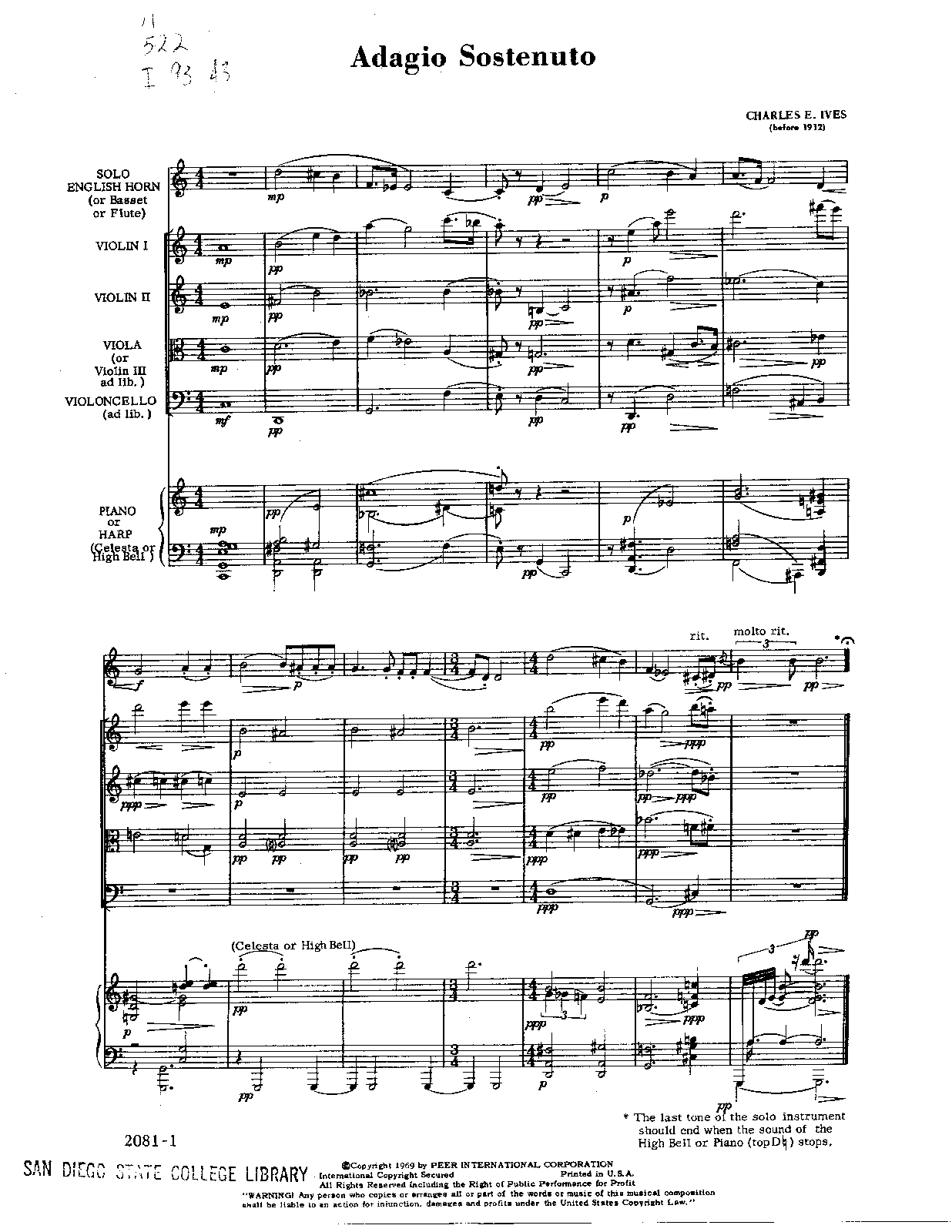 | Instrumentation | English horn, celesta (or high bell), piano (or harp), 3 violins (or 2 violins, viola; 3rd violin ad lib.), cello (ad lib.) |