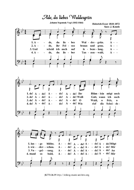 Ade, du liebes Waldesgrün ; Abschied ; Abschied vom Walde