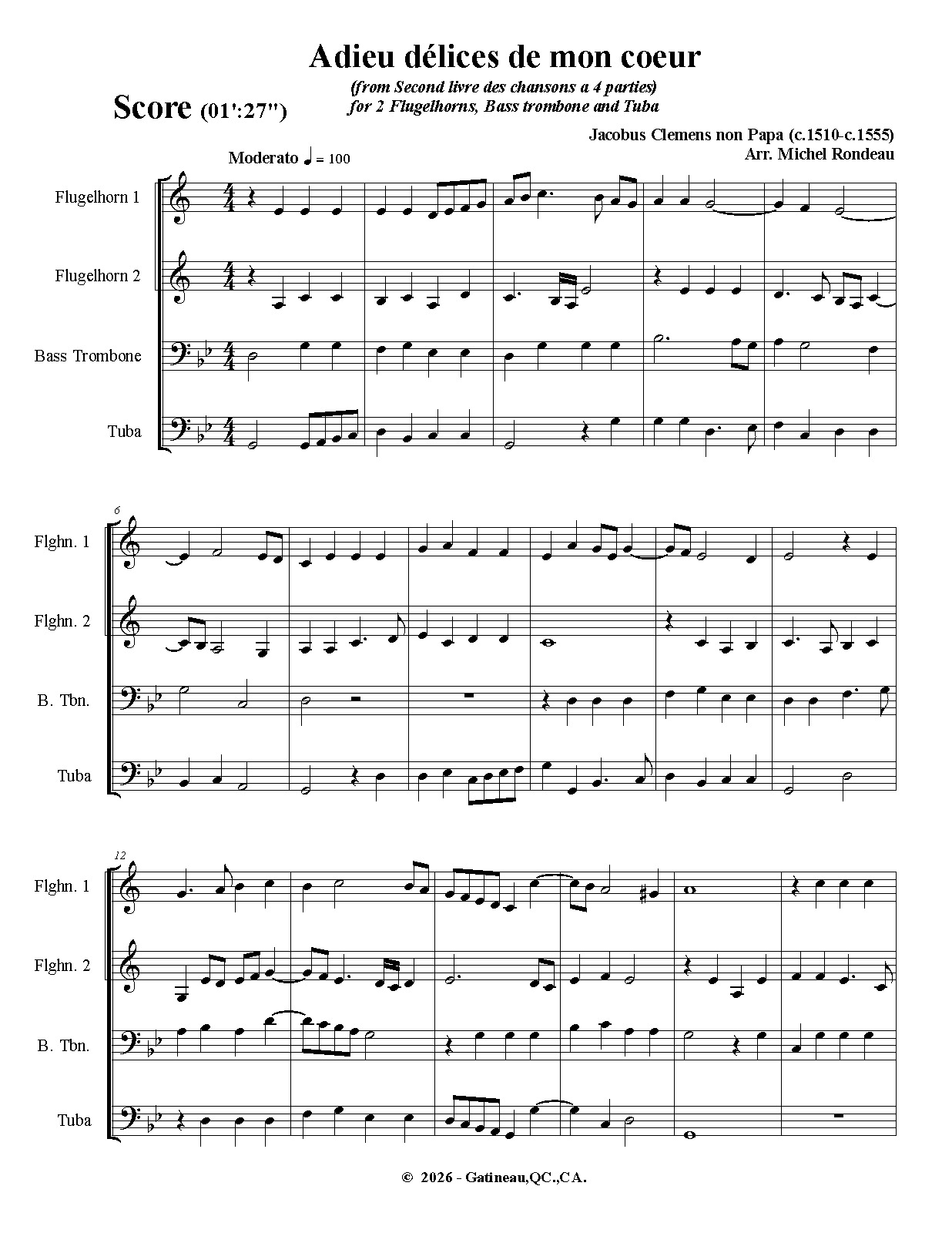 | First Publication | 1552 in Second livre des chansons a 4 parties (Phalese press, Louvain) [reprinted in 1559] |