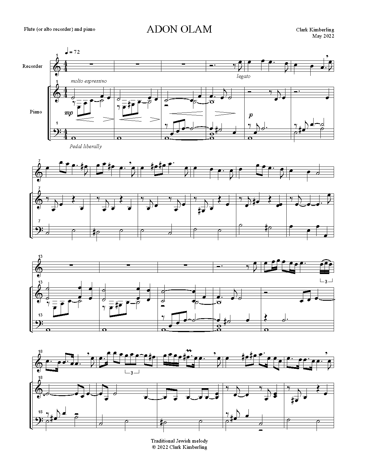 | Extra Information | An arrangement of Jewish melody and hymn tune, ADON OLAM |