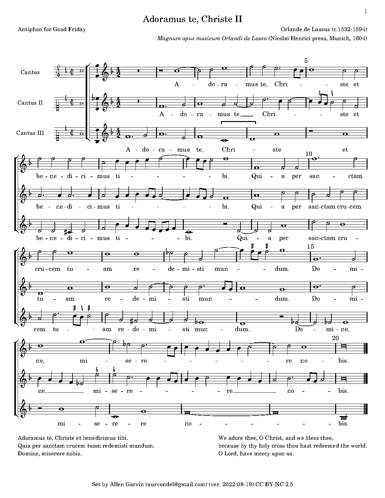 | Genre Categories | Antiphons; Religious works; For 3 voices; |