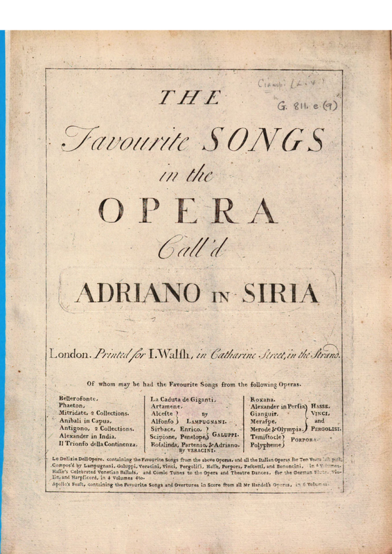 | First Performance. | 1748-01-16? in Venice, Teatro San Cassiano A 1750-02-26 in London, King's Theatre in the Haymarket B |