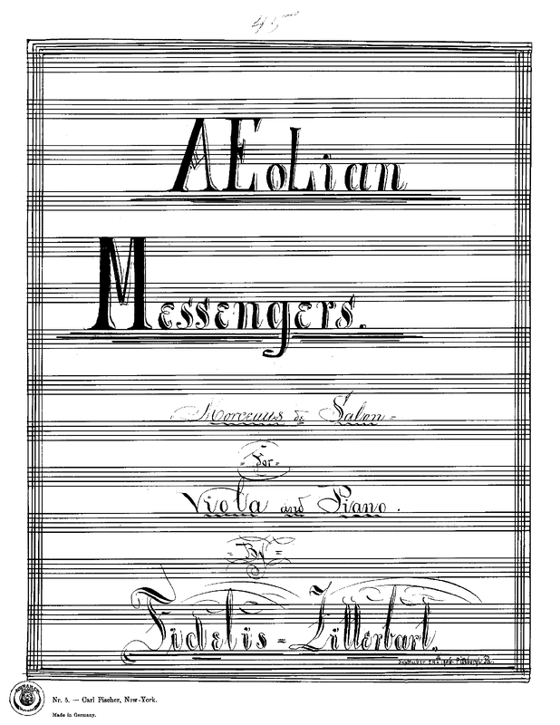 | Alternative. Title | Aeolian Messengers, 5 Morceaus de salon for Viola and Piano |