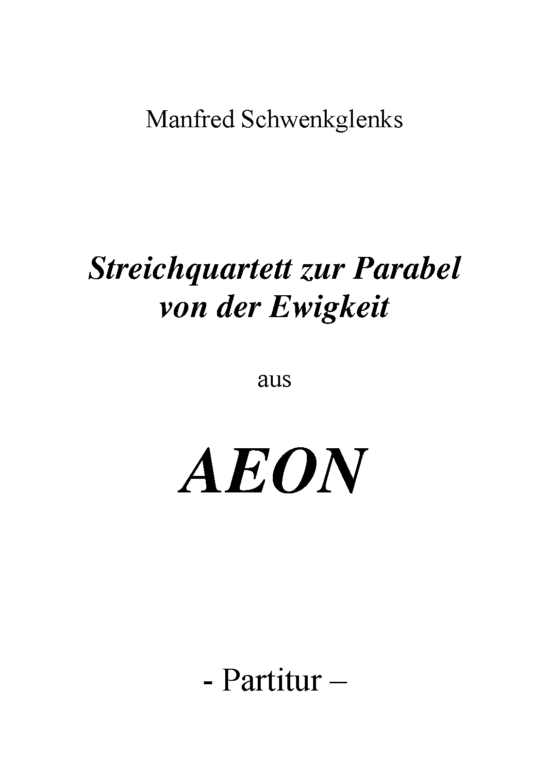 | Extra Information | Musiktheater über das Universum, noch nicht fertiggestellt. del "Aeon"; Grund: hiebei handelt es sich um ein abendfüllendes Bühnenwerk, das noch nicht fertiggestellt ist. Es existieren vier Teilstücke, die als Skizzen aufzufassen sind, obwohl sie (als solche) schon einmal öffentlich aufgeführt wurden. Im Laufe des weiteren Entstehungsprozesses werden diese Stücke aber nochmals generell überarbeitet, geändert oder sogar ganz gestrichen. Daher ist es sinnvoll, diese erst wieder einzustellen, wenn das gesamte Werk vollendet ist. |