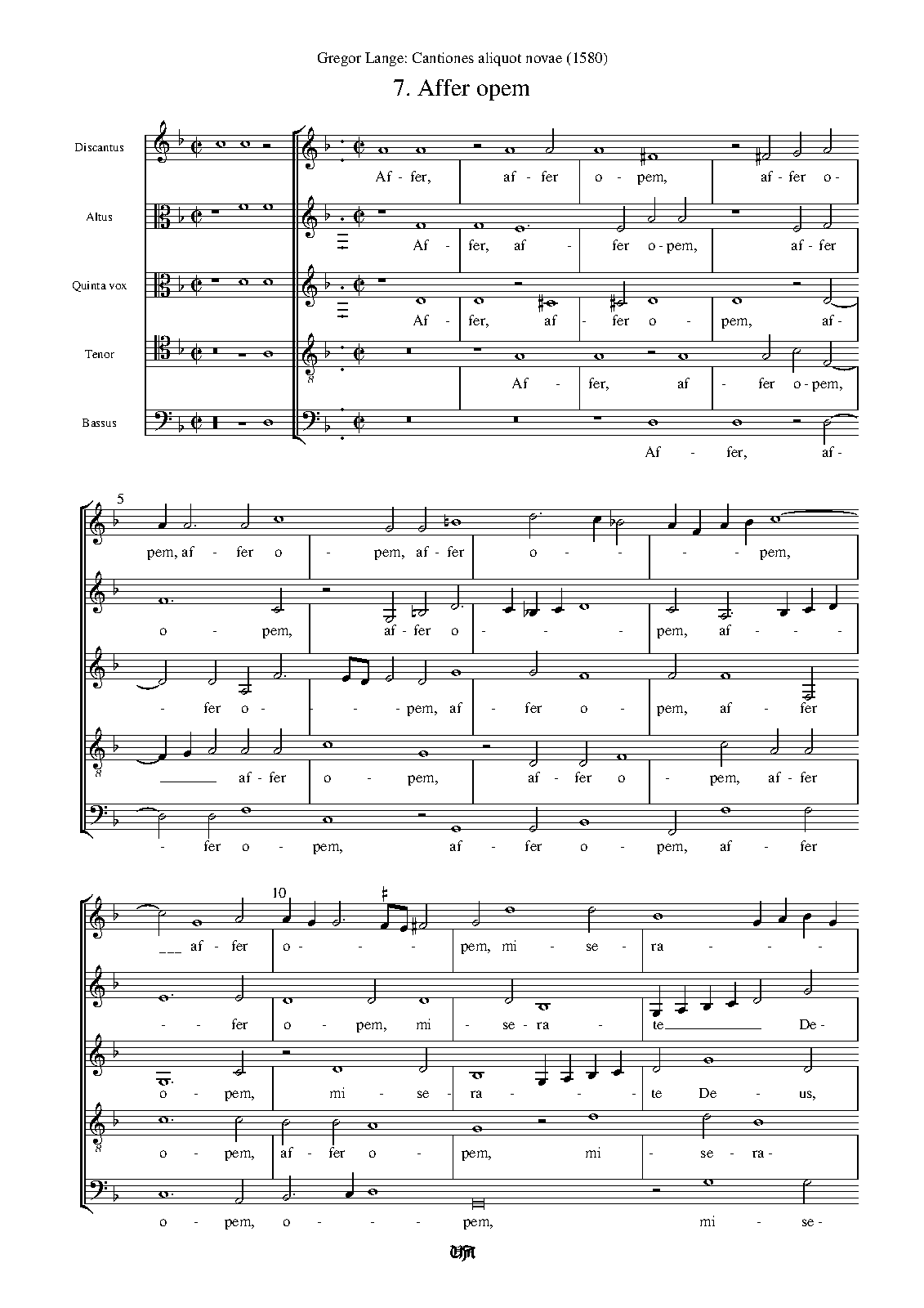 | First Publication | 1580 in Cantiones aliquot novae (No.7) |