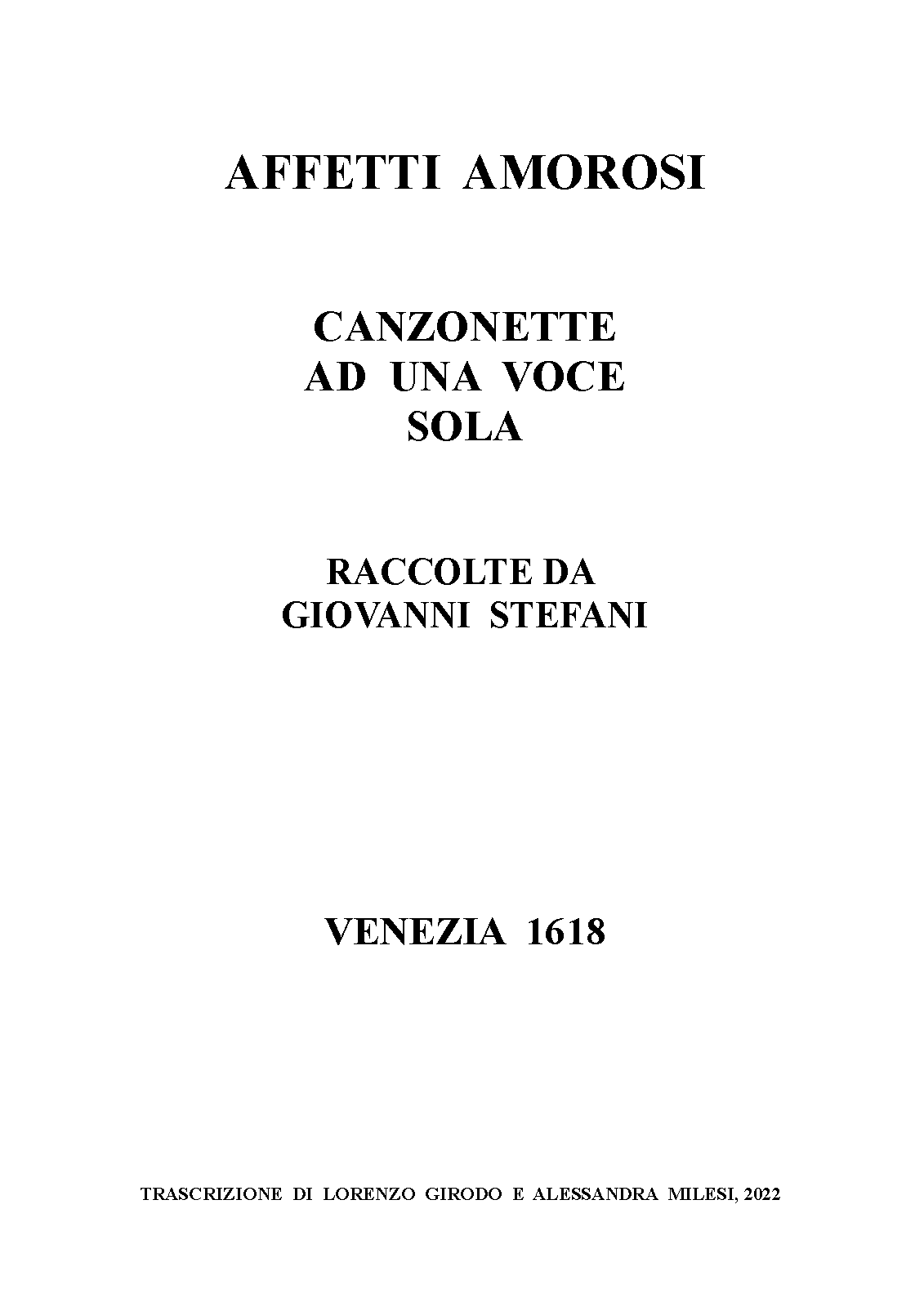 There was also an Affetti amorosi for 3 voices, but not by Stefani; see Affetti Amorosi, Libro 1 (Negri, Marcantonio) (and presumably, eventually, subsequent volumes will also be on IMSLP).