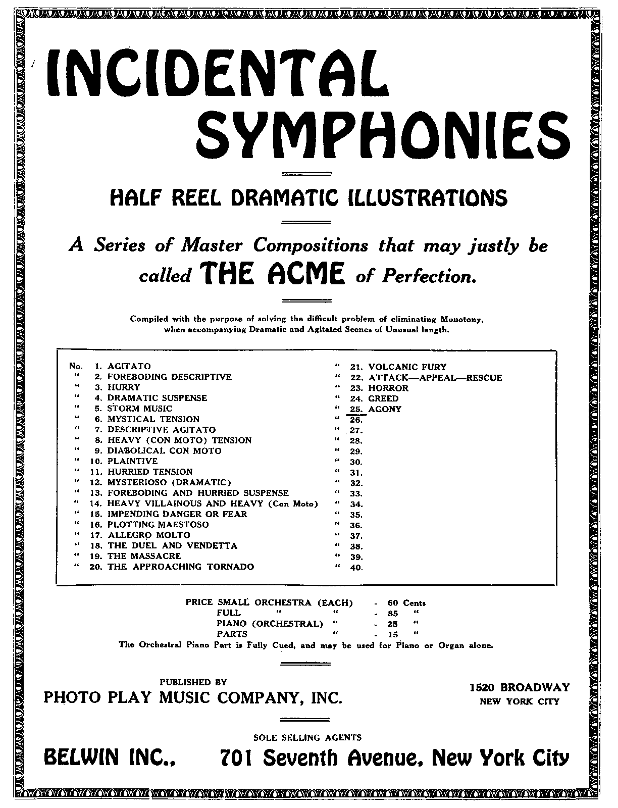 | Genre Categories | Film scores; Incidental music; Theatrical Works; |