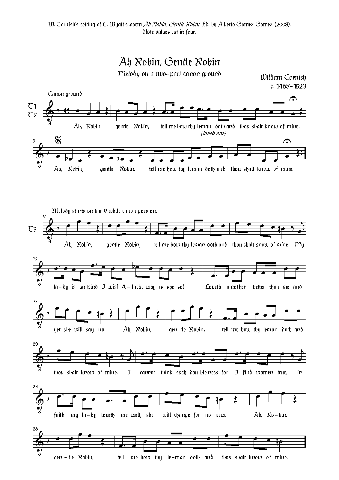 | Work Title | Ah Robin, Gentle Robin |