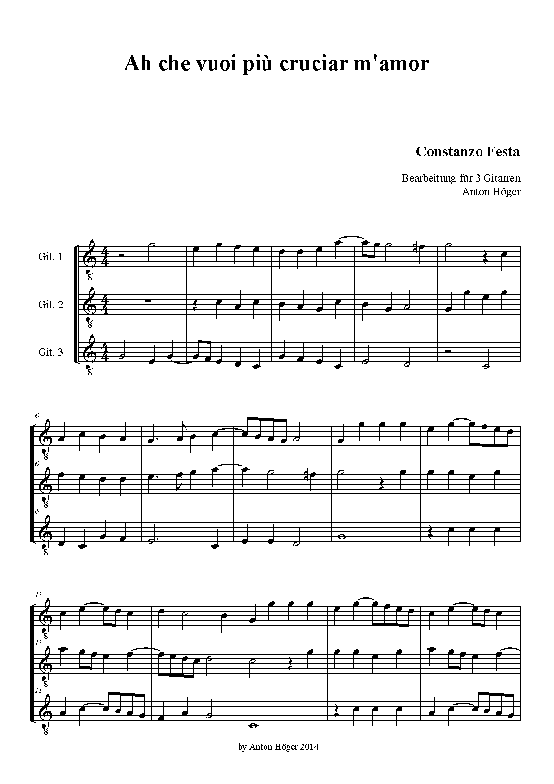 | Work Title | Ah che vuoi più cruciar m'amor |
