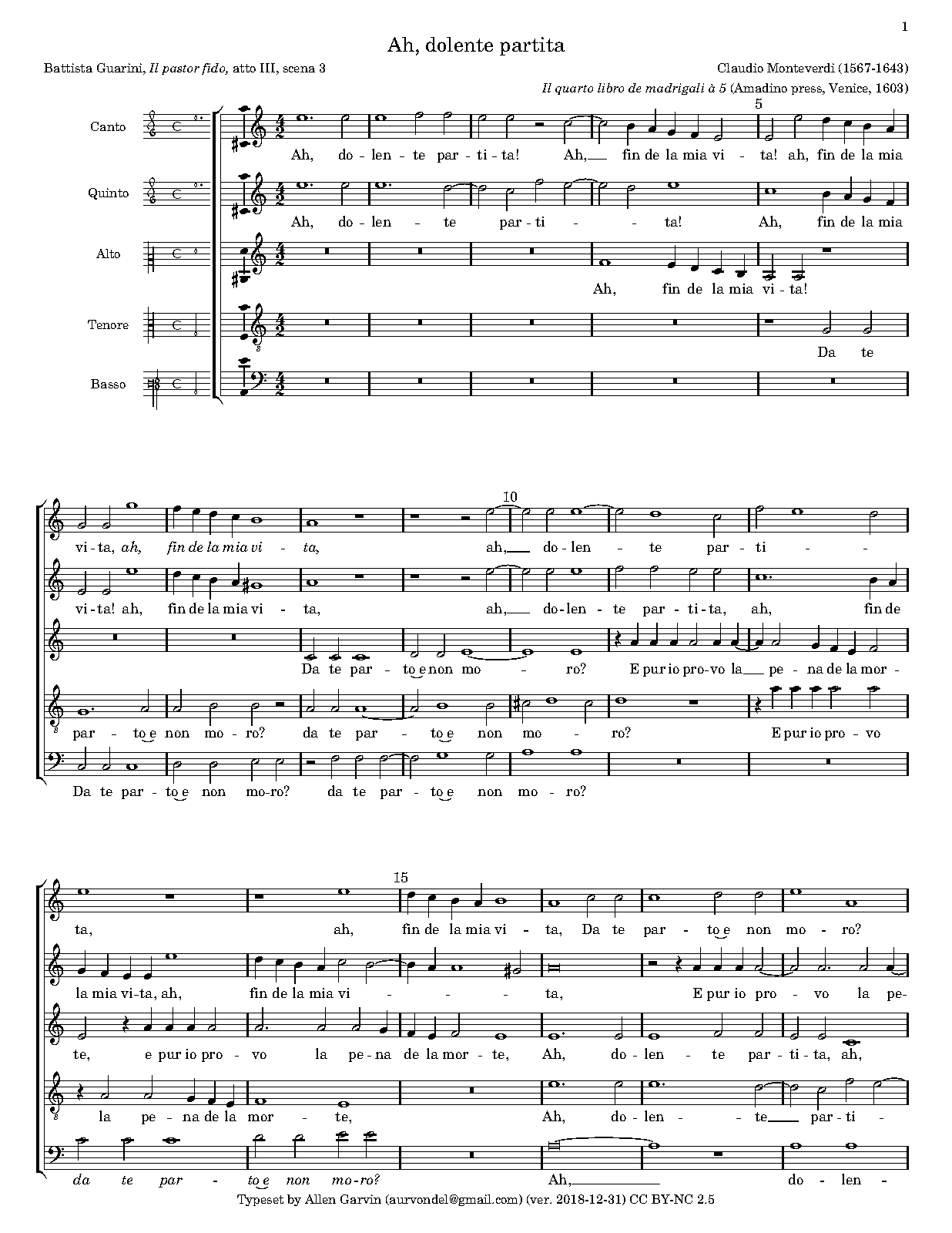 | Work Title | Ahi dolente partita |