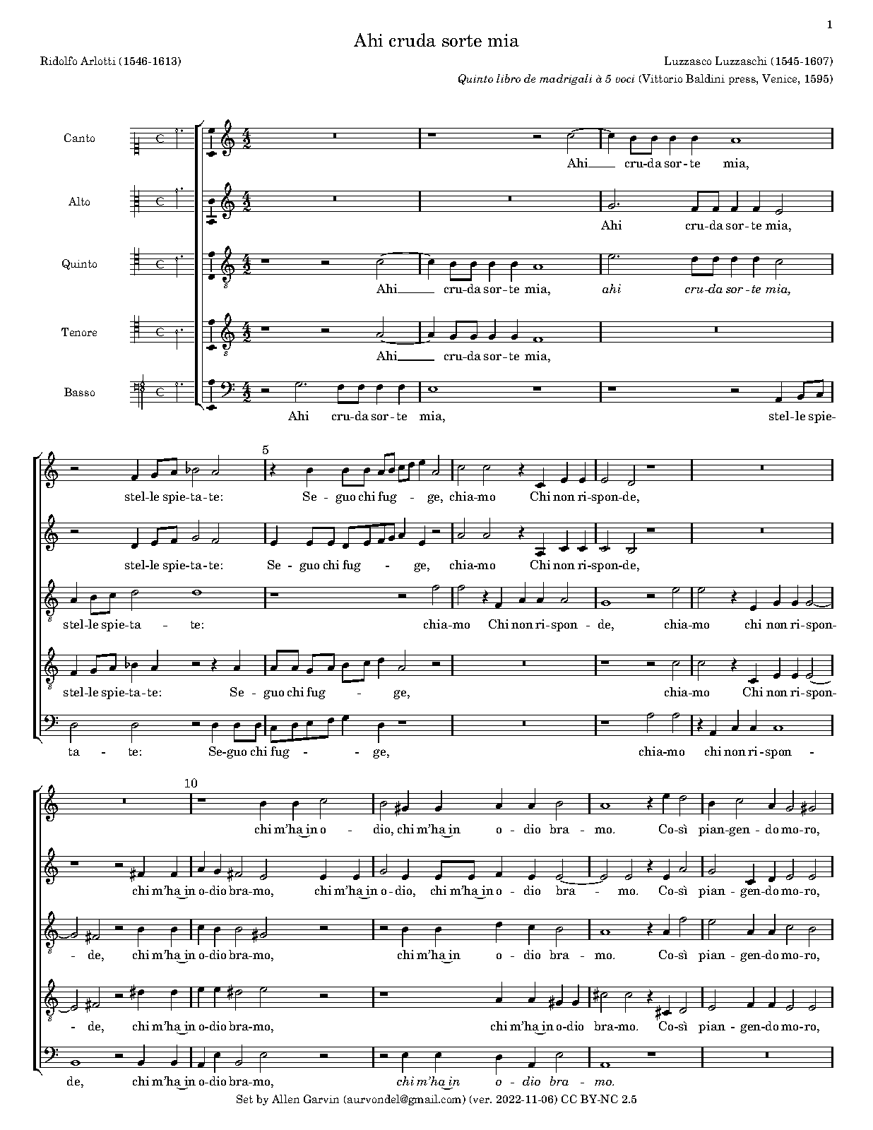 | First Publication | 1595 in Quinto libro de madrigali à 5 voci (Venice: Vittorio Baldini press) |