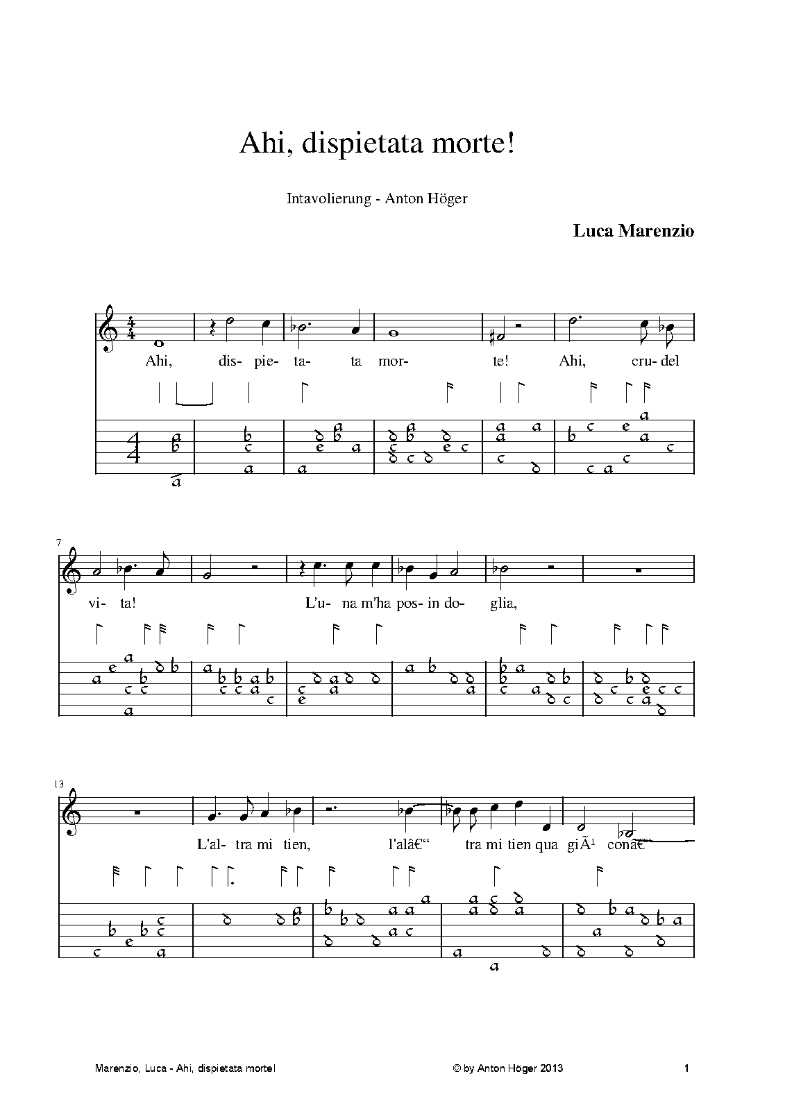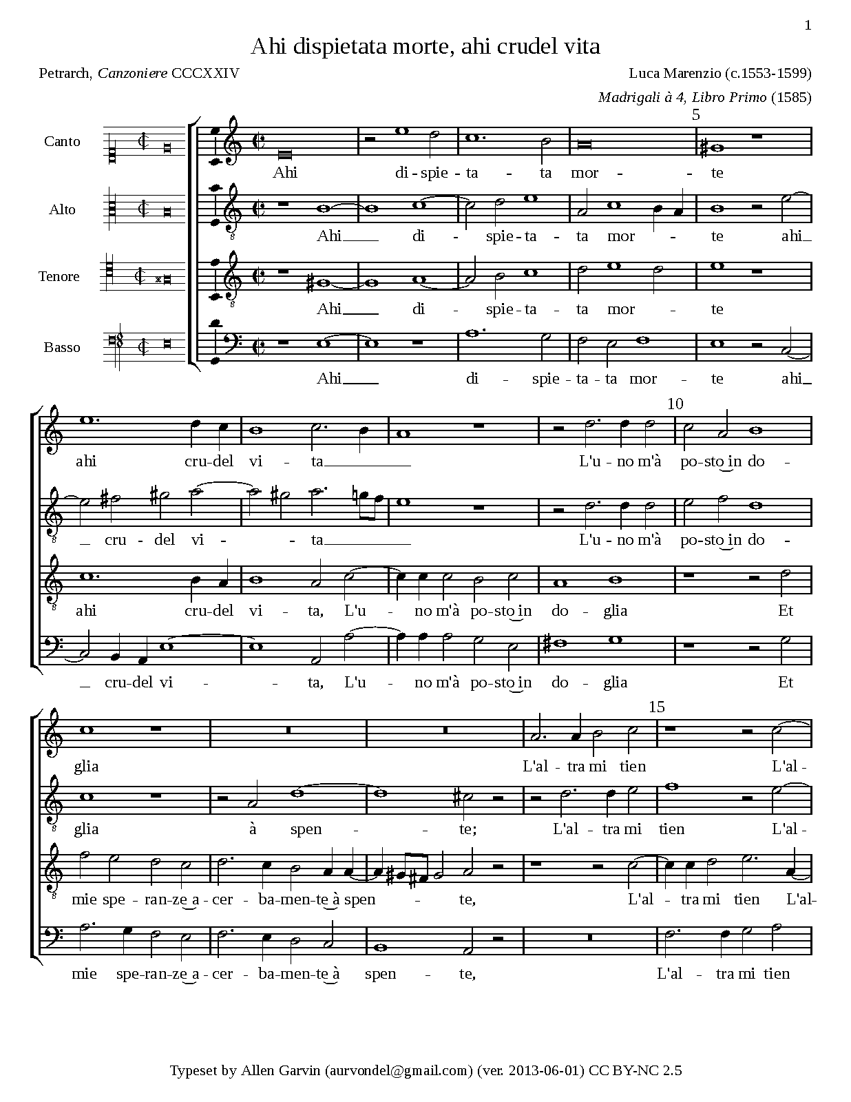 | Work Title | Ahi dispietata morte, ahi crudel vita |