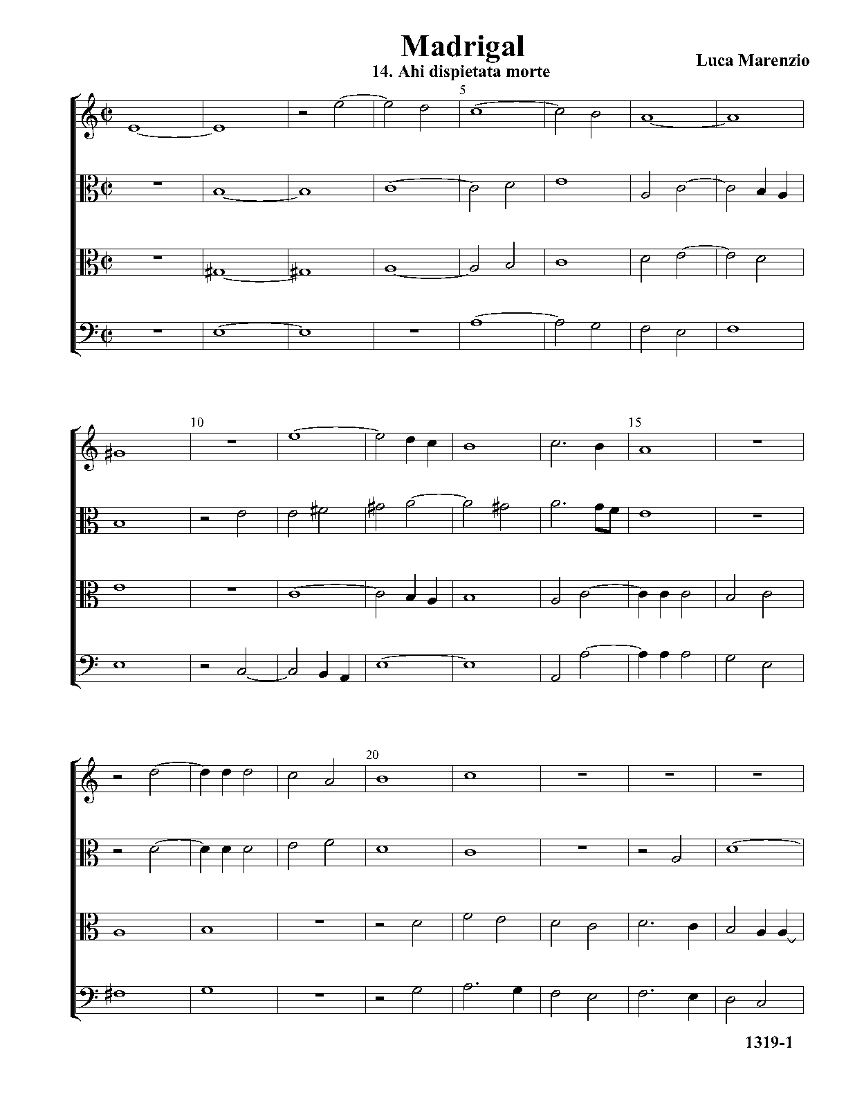 | Genre Categories | Madrigals; For 4 voices; For unaccompanied voices; |