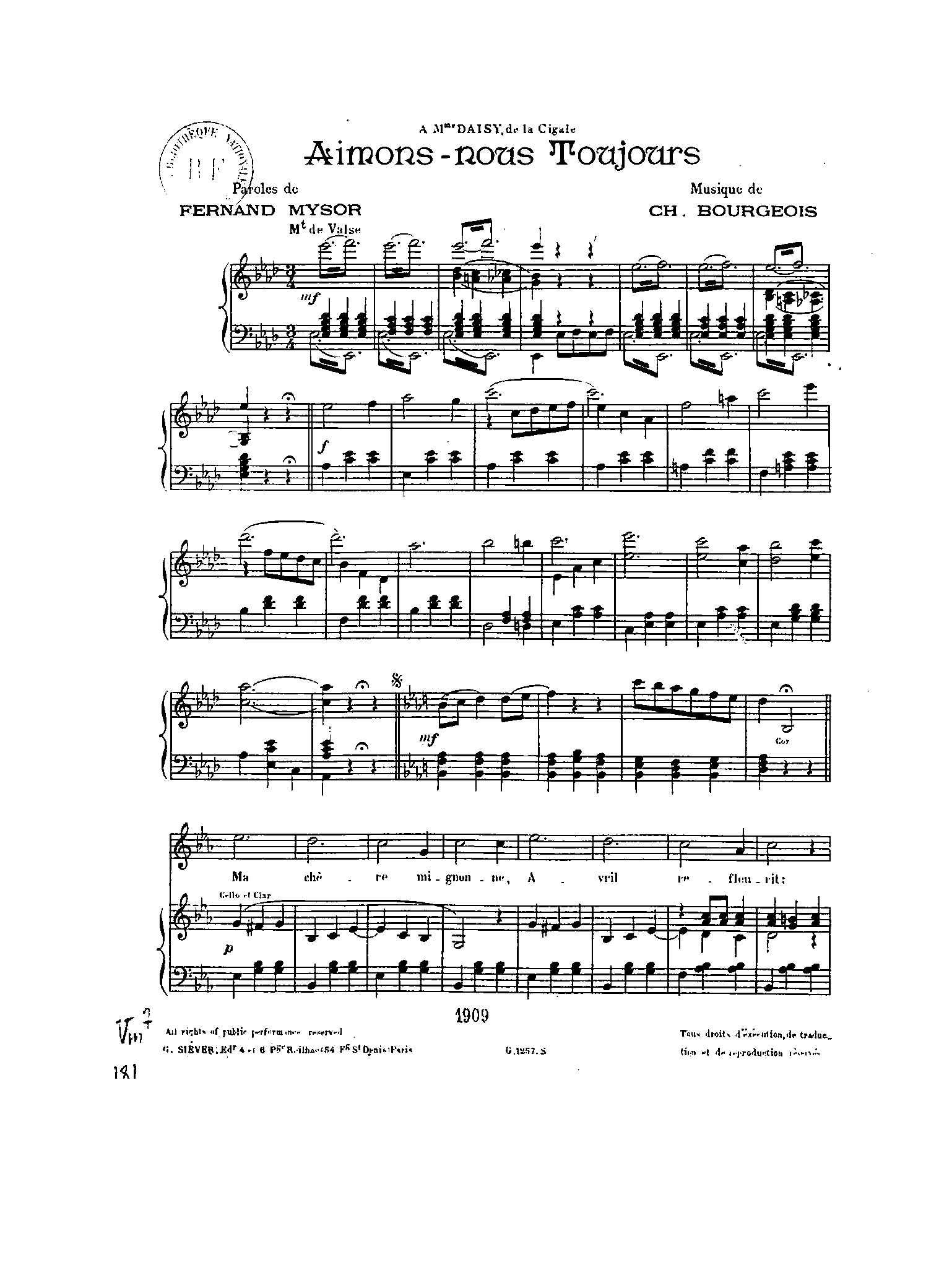 | Dedication | à Mlle. Daisy, de la Cigale |