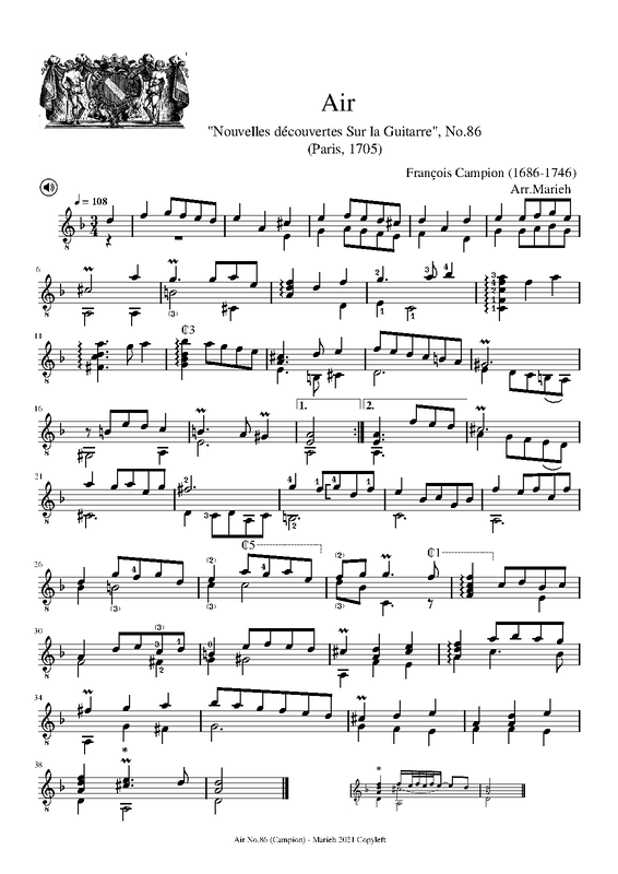 | First Publication | 1705 ca. in Nouvelles découvertes Sur la Guitarre |