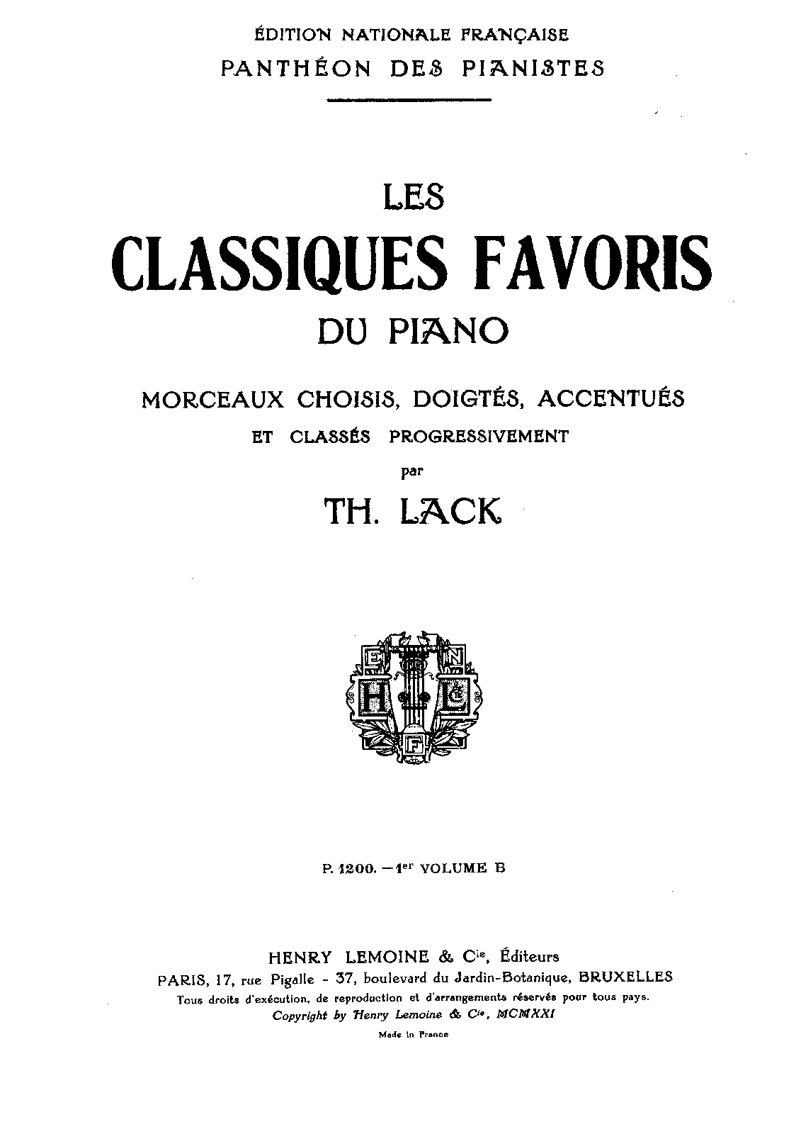 | Genre Categories | Airs; For piano; Scores featuring the piano; For 1 player |