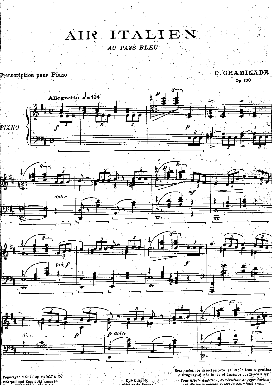 it seems that this piece is a transcription for piano by Chaminade, originally written for other instruments or orchestra?