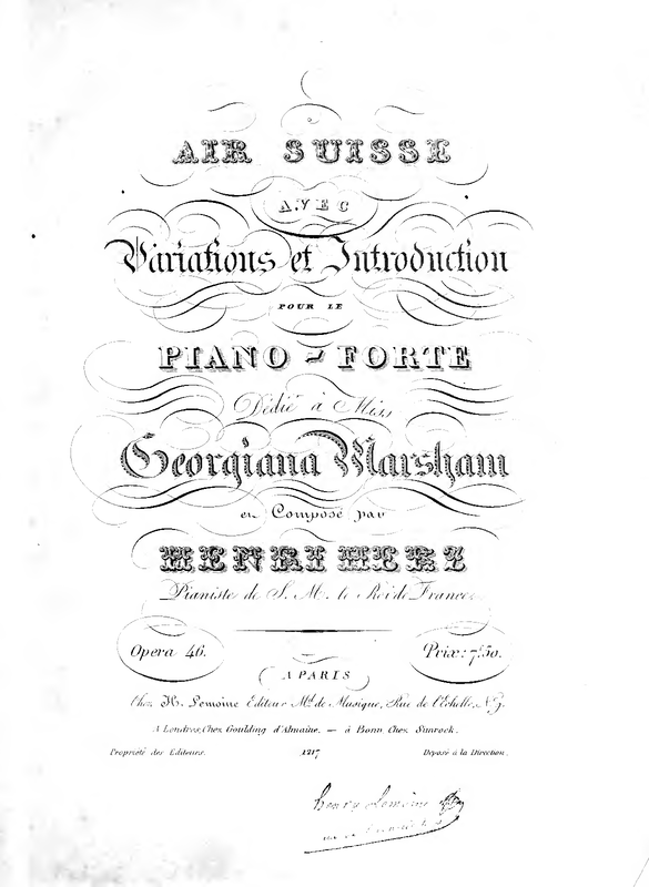 | Dedication | Dédié à Miss Georgiana Marsham |