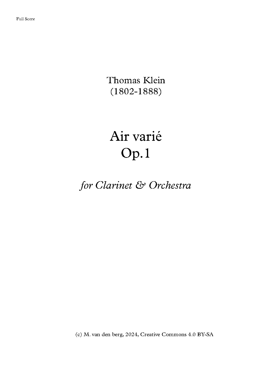 | Genre Categories | Variations; For clarinet, orchestra; Scores featuring the clarinet; |