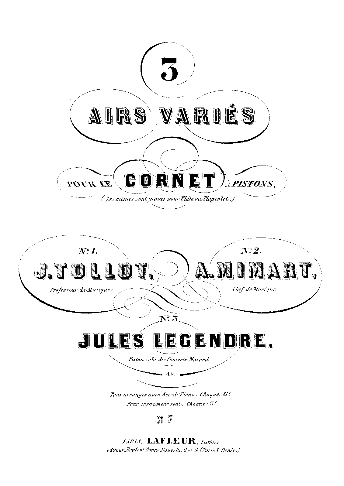 | Genre Categories | Variations; For cornet, orchestra; Scores featuring the cornet; |