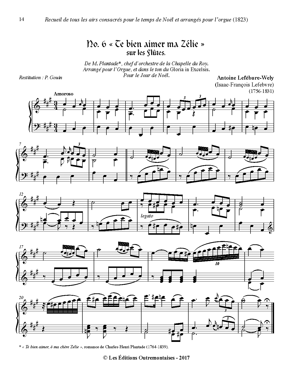 | Alternative. Title | Air varié sur les flûtes de Plantade, «Te bien aimer ma Zélie» arrangé pour l’orgue, et dans le ton du Gloria in Excelsis pour le Jour de Noël |