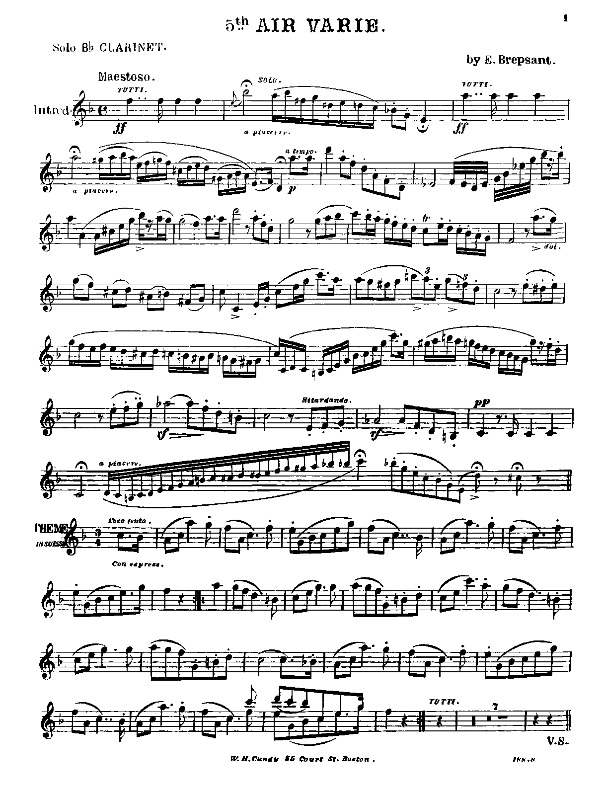 This is probably the work entitled Cinquième air suisse dans la leçon du Barbier, varié pour la clarinette en si bémol avec acc. d'orch. ou d'harmonie ou de piano seulement published in 1867 by Lafleur père et fils in Paris. On the Cundy solo clarinet part from the LOC beneath the word "theme" is "air suisse" although the "a" is cut off. Scores at BNF: Clarinet and orchestra, Clarinet and wind band, and Clarinet and piano.