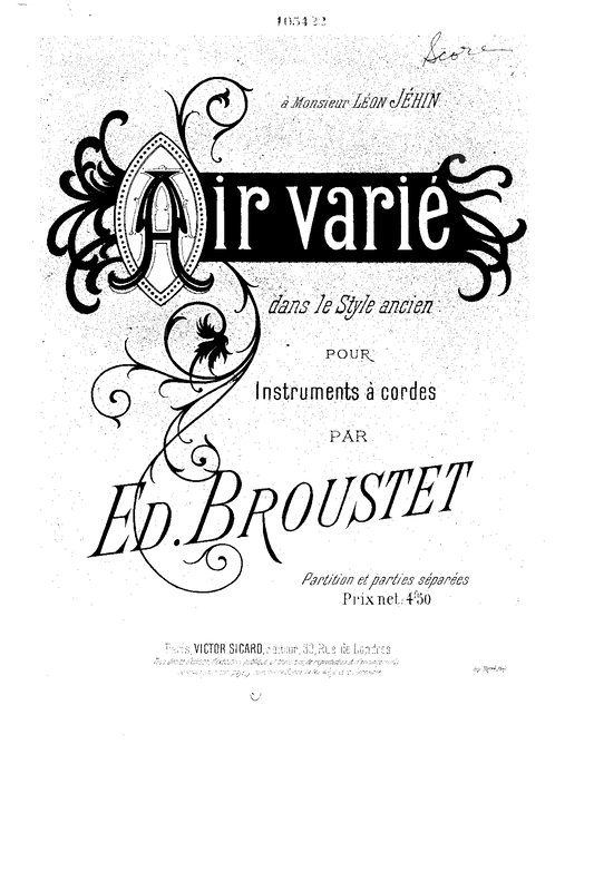 | Genre Categories | Variations; For 2 violins, viola, cello, double bass; Scores featuring the violin; |