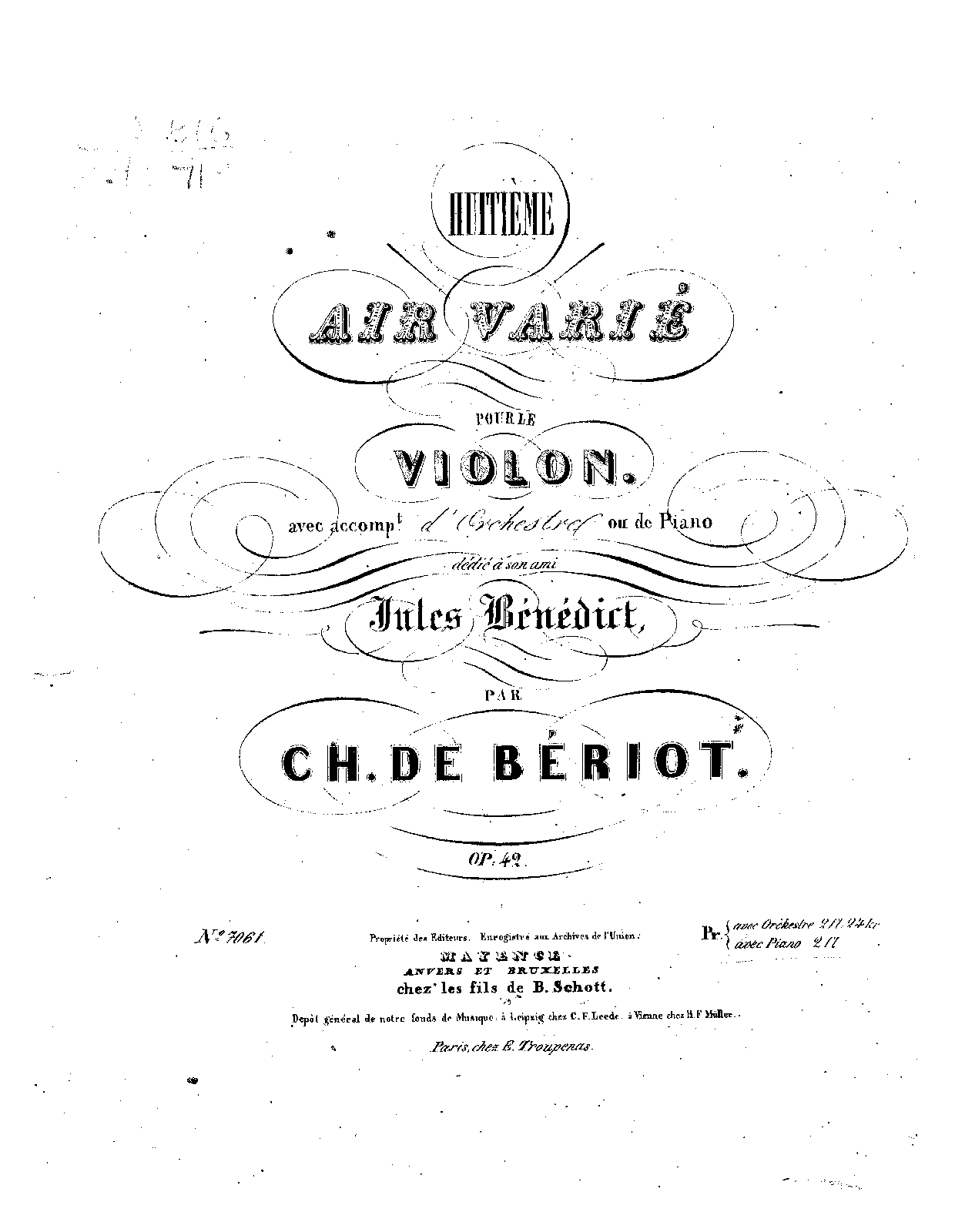 Mainz: Schott, n.d.[1843]. Plate 7061?.
