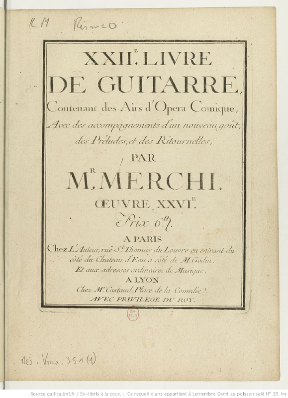 | Alternative. Title | XXIIe livre de guitare contenant des airs d'opera comique, avec des accompagnements d'un nouveau goût, des préludes, et des ritournelles |