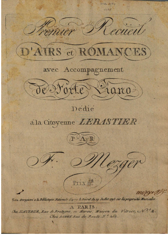 | Alternative. Title | [Premier] Recueil d'airs et romances avec accompagnement de Forte Piano |