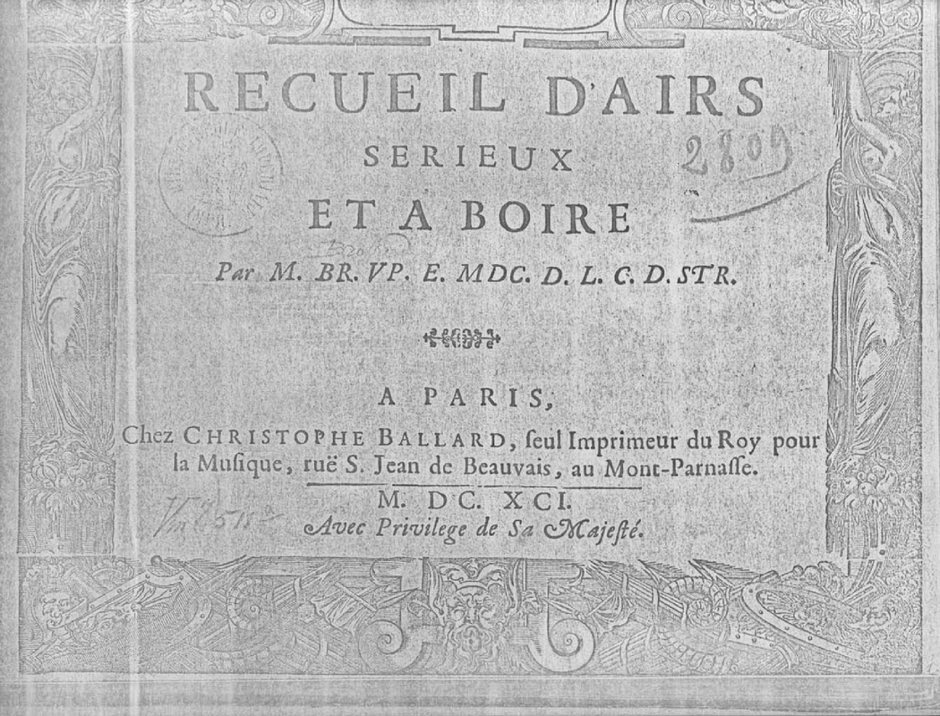 - 15. Qu'on ne me serve plus que du vin en Bouteille, SdB.190 (2 voices, continuo)