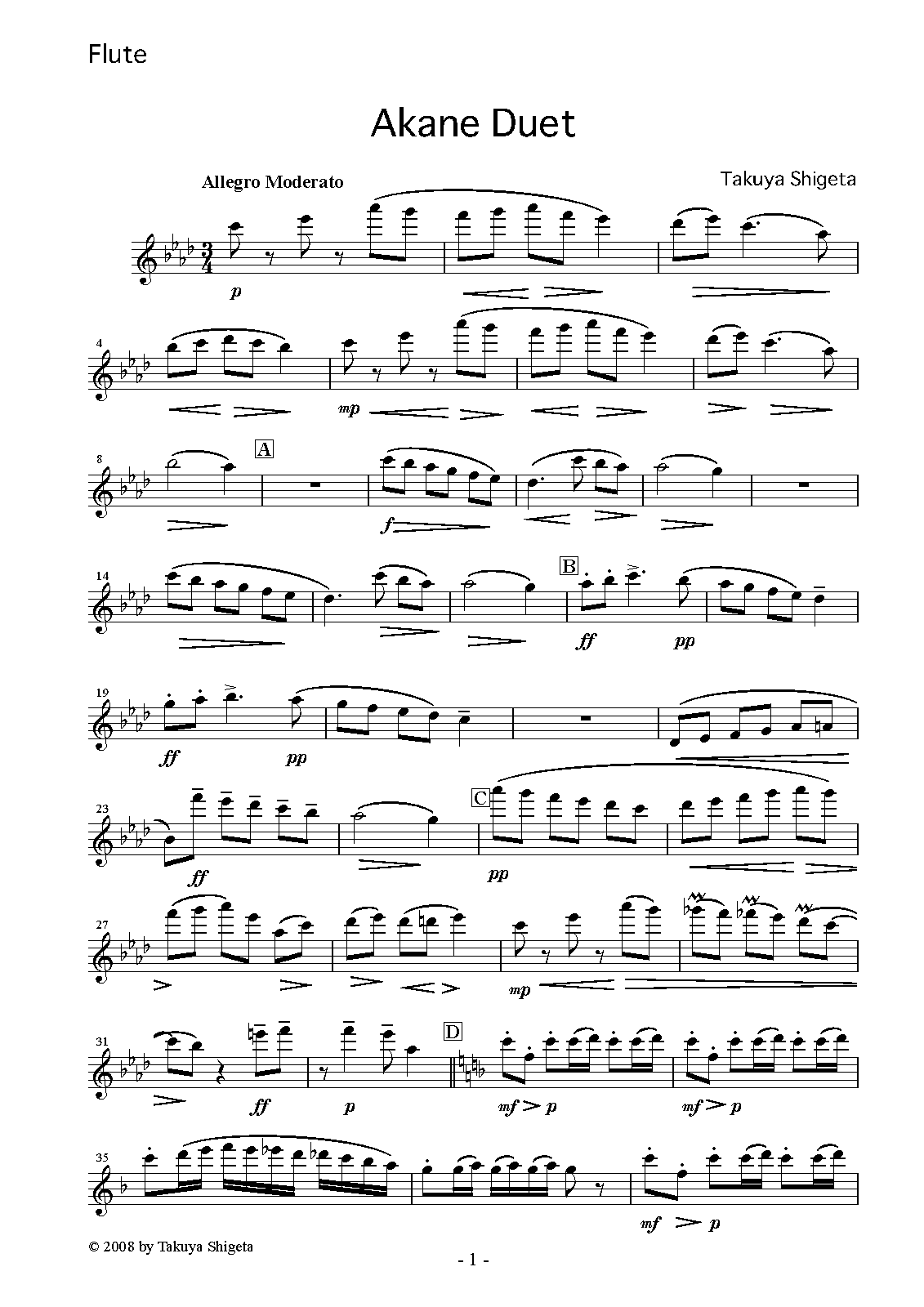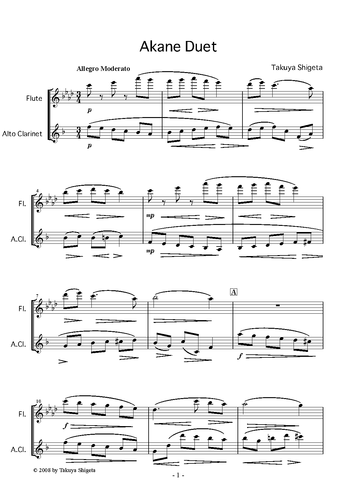 | Work Title | Akane Duet for Flute and Alto Clarinet |