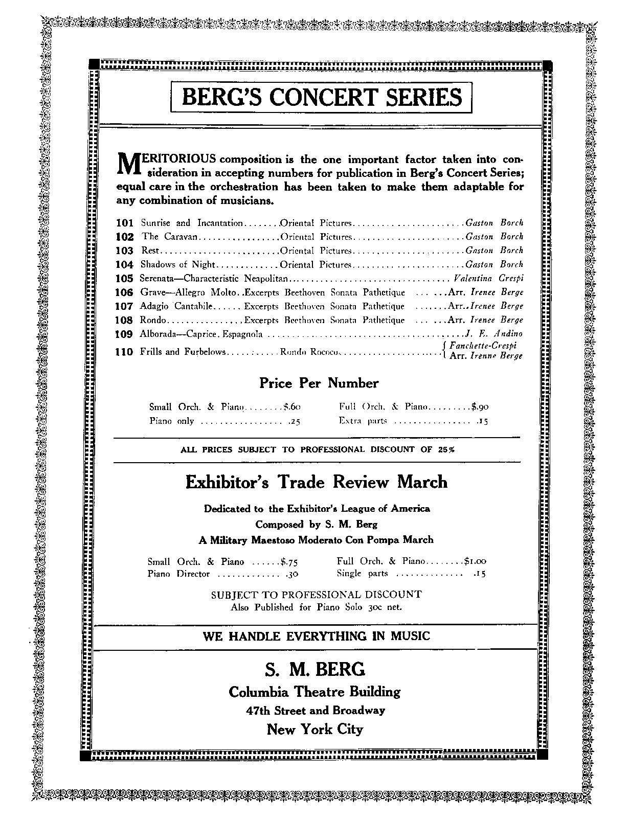 Berg's Concert Series, No.109 New York: S.M. Berg, 1917.
